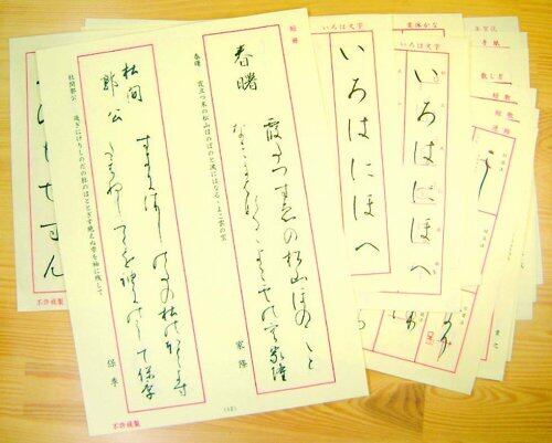 「いろは」から「変体かな」「連綿文字」の基礎から短歌、俳句、散らし書き、手紙、年賀状などの応用まで15種、幅広い実践的な「かな練習教材」。
