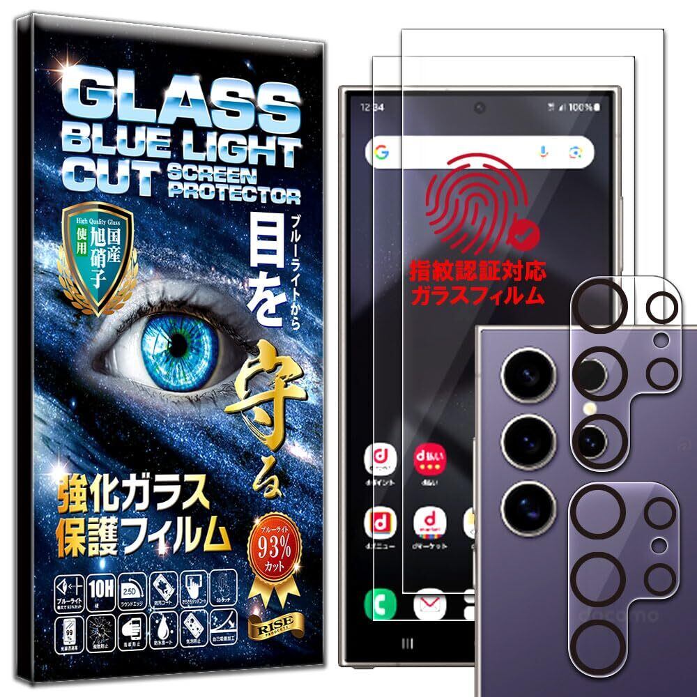 【指紋認証対応】【2024年最新強化モデル】【RISE】 2枚+2枚 フィルム Galaxy S24 Ultra ガラスフィルム SC-52E SCG26 用 ブルーライトカット カメラフィルム レンズフィルム レンズ保護ガラス レンズカバー 保護フィルム 強化 ガラス 高透過 高光沢 日本製 旭硝子 0.26mm 硬度10H 2.5Dラウンドエッジ 自動吸着 気泡ゼロ 飛散防止 指紋防止 撥水撥油 3D タッチ For Galaxy S24 Ultra SC-52E SCG26