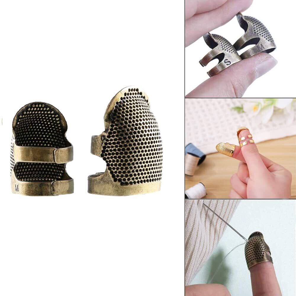 サムコス 指ぬき 手芸裁縫指ぬき 指プロテクター 裁縫道具 4個入 調整可能な指金属シールド 滑り止め 裁縫用 指保護 DIY裁縫用具 (アンティークゴールドSサイズ*2個+Mサイズ*2個)
