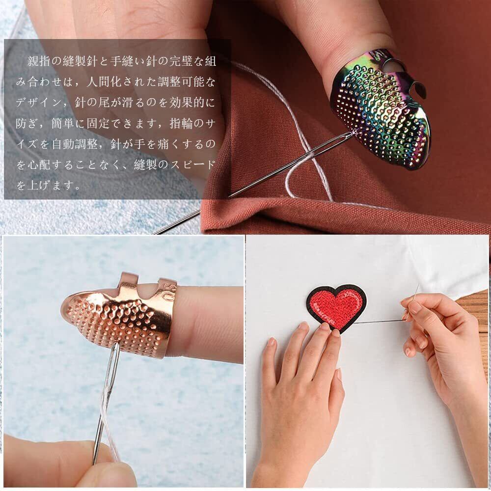 【調整可能】調整可能な開面ピンは、指にフィットします。親指の縫製針と手縫い針の完璧な組み合わせは、あなたの指をより良く保護することができます。