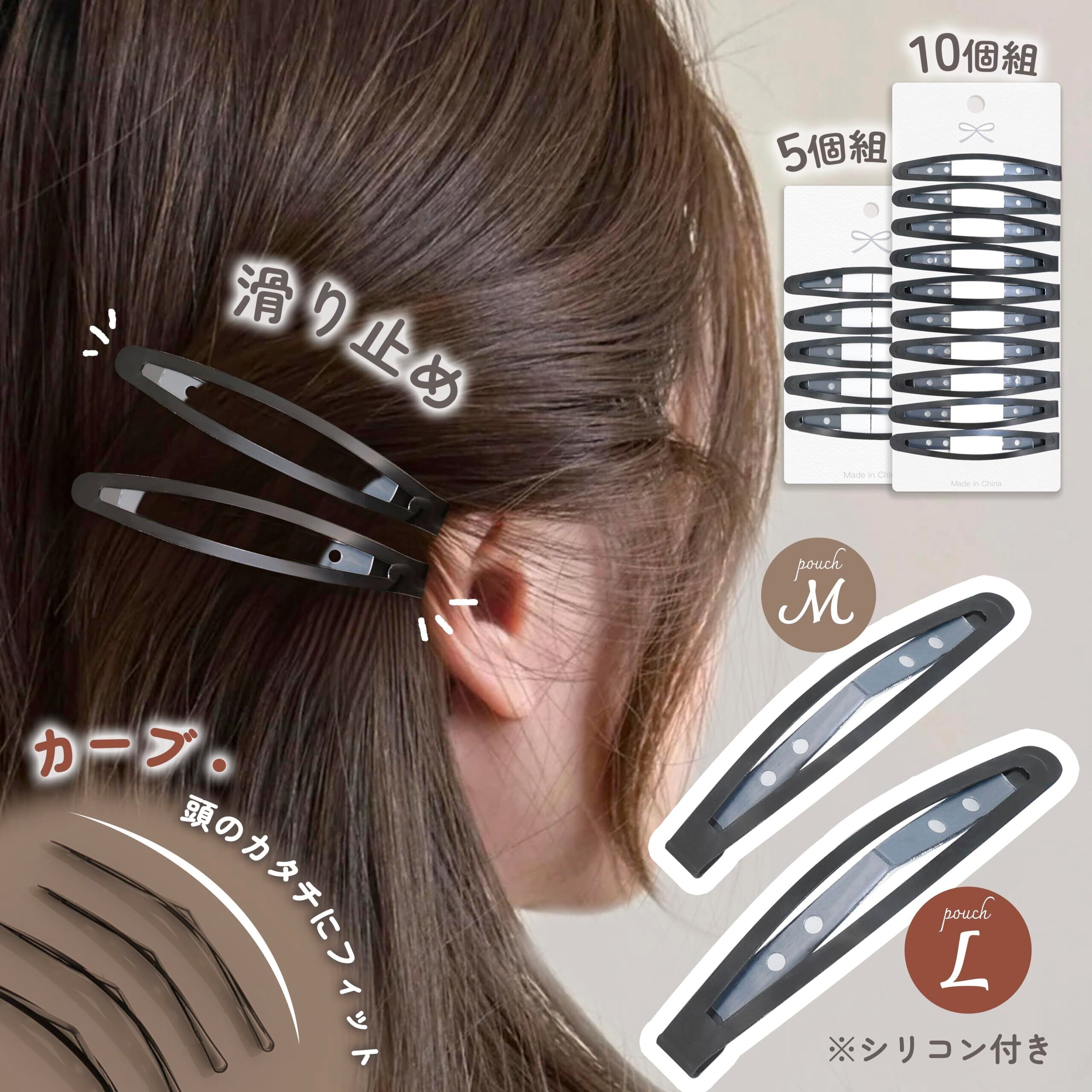 【カーブ・髪に跡が残らない】全体はカーブデザインが採用し、頭の形に自然に沿ってフィットします。髪に跡を残さず、髪を傷めることなく固定できます