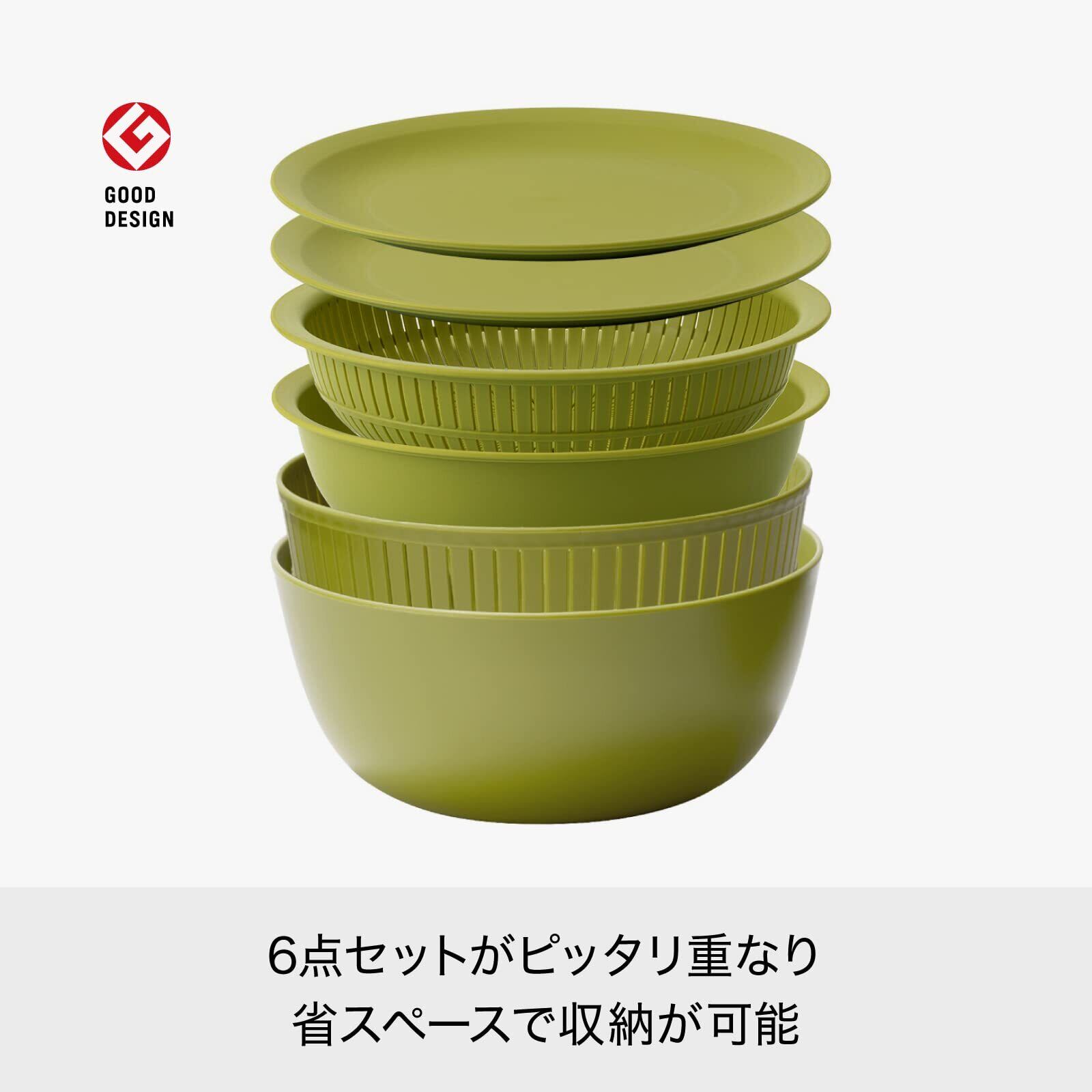 ライクイット (like-it) ざる ボウル 電子レンジ対応 Colander&Bowl 米とぎにも使える ザルとボール グリーン 6点セット 日本製 水切り 湯切り可能 耐熱ボウル