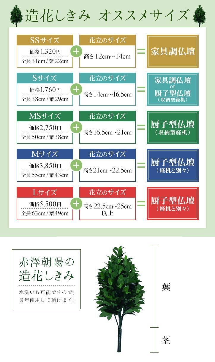 赤澤朝陽 仏壇用 造花 しきみ 樒 おしきみ ルネサンスフラワー SSサイズ 31cm 仏具