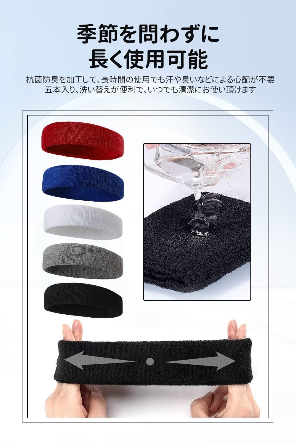【洗い替えに便利な5本セット】シンプルなデザインで、コーディネートしやすい5本のヘッドバンドがセットになり、日常の洗い替えには十分便利です。洗濯を重ねて型崩しにくい耐洗濯性により、汗をかきやすい盛夏でも臭と汚れに気にせず、気軽に洗えるのが嬉しいです。折りたためで、使わない時にポケットに入れても邪魔になりません。