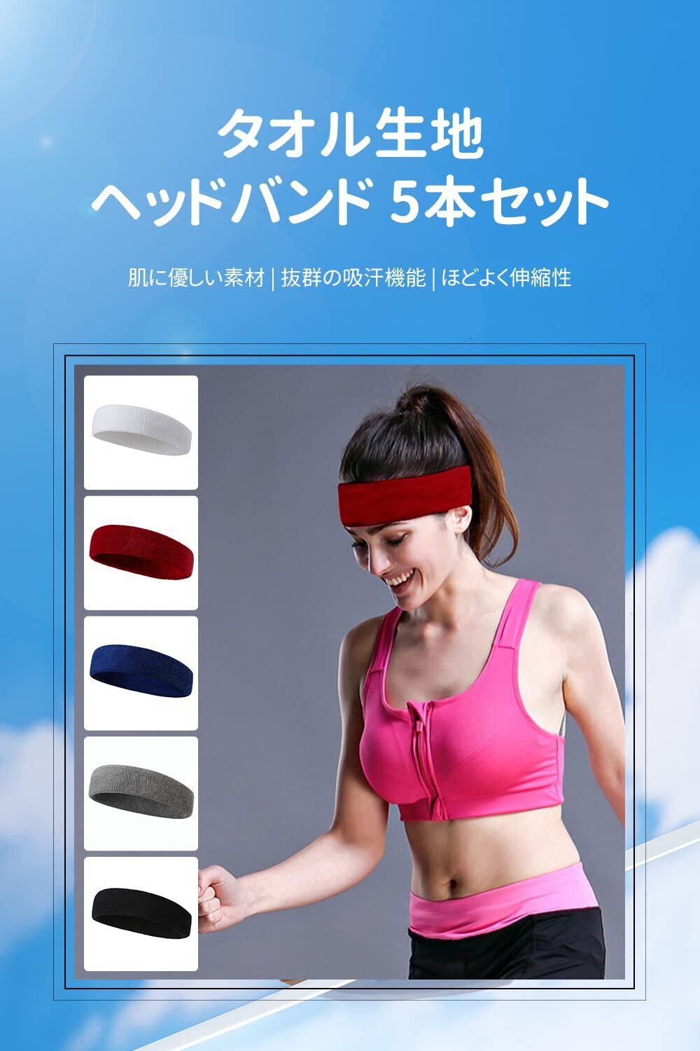 ヘッドバンド ヘアバンド 汗止め 吸汗通気 タオル生地 柔らかい 抗菌防臭 髪留め スポーツ用 洗顔用 自転車 ダンス ランニング ヨガ 男女兼用 無地 コットン(綿)素材 5本セット