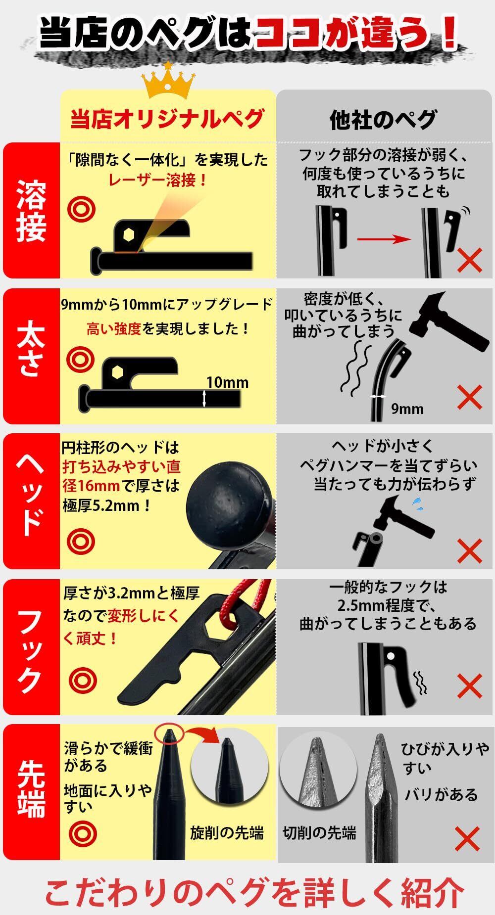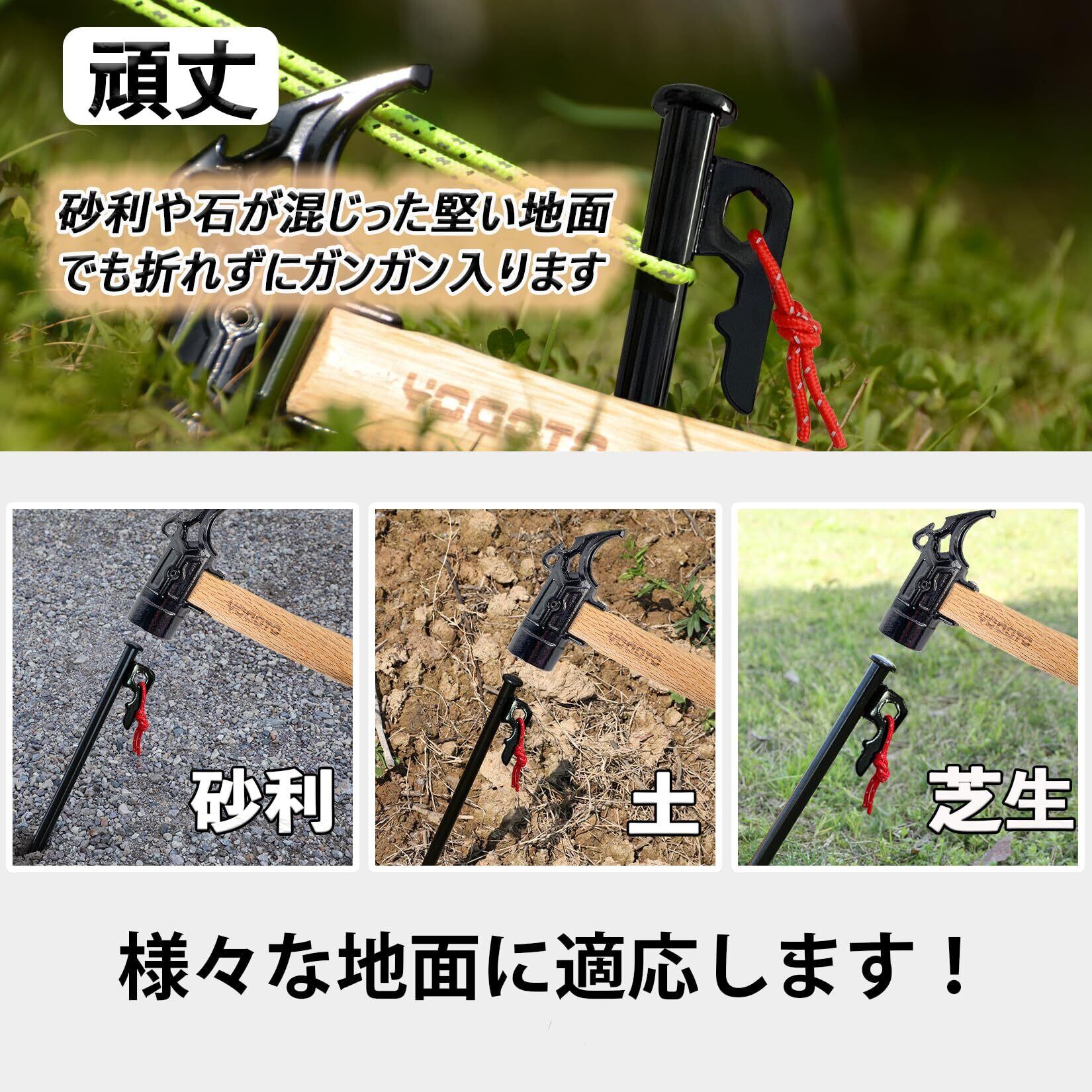 【新春セール】【YOGOTO】 30cm ペグ セット 硬い土 砂地 草地用 タープペグ φ10mm ステーク テントペグ ペグセット (10本セット(夜光ロープ、自在金具と収納ケース付き)) | gsmshop
