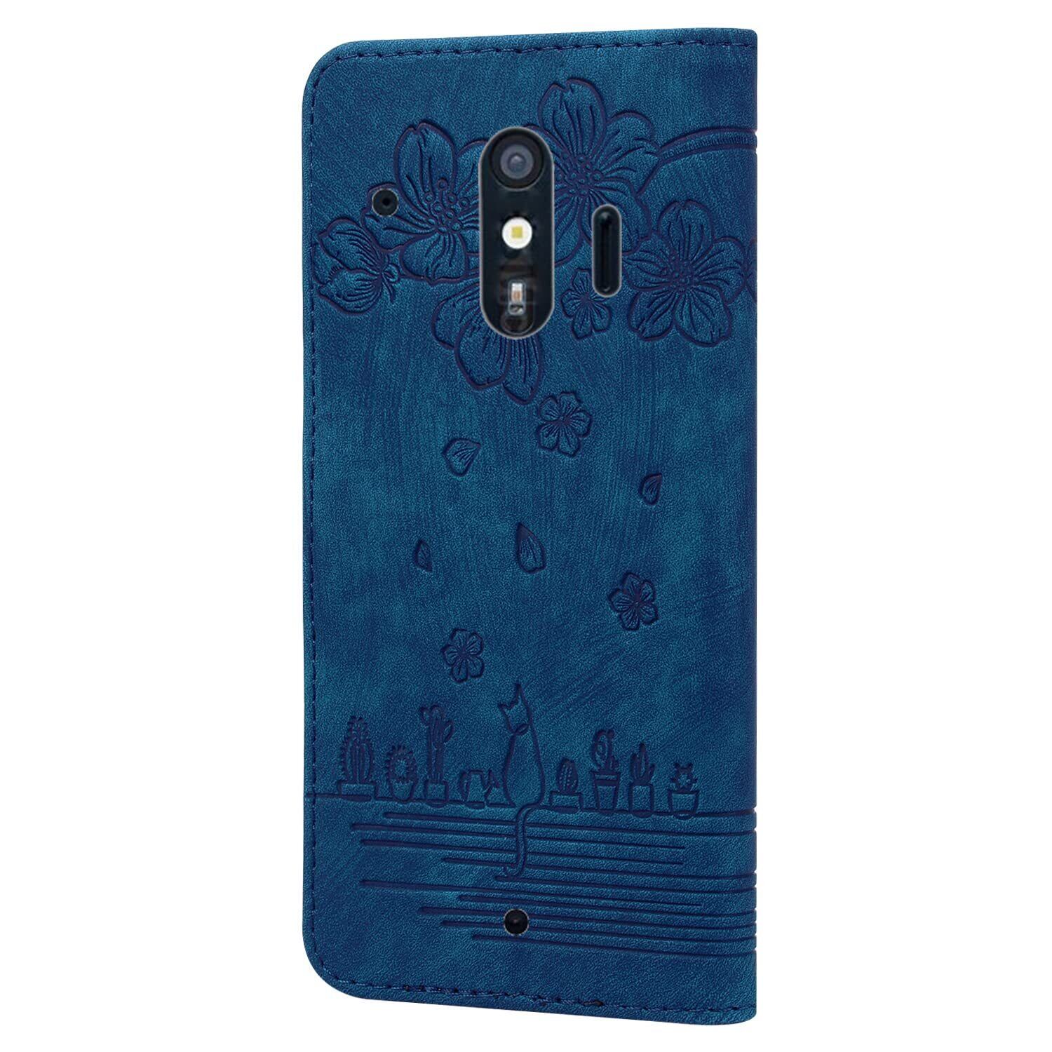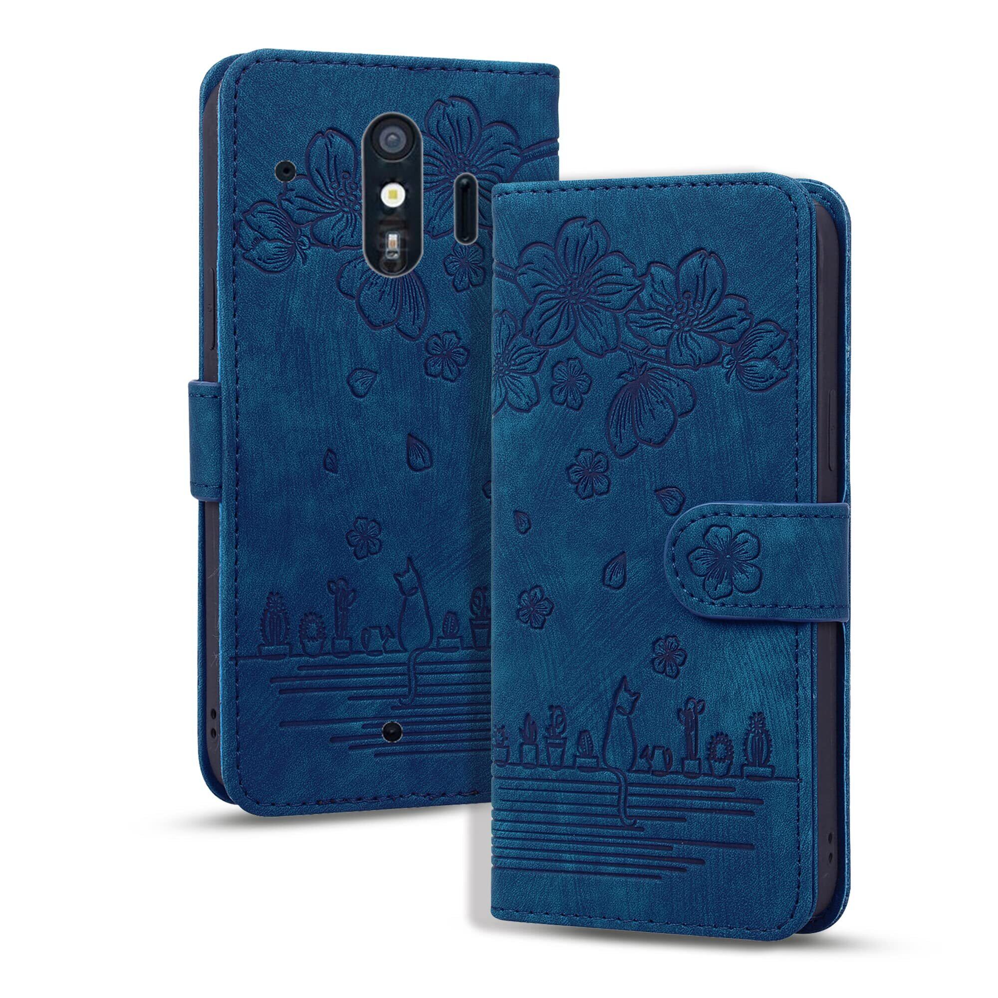 Torske Fujitsu Easy Phone F-42A ケース 手帳型 Easy Phone F-01L カバー さくら柄 らくらくスマートフォン F-42A ケース 油絵デザイン ヴィンテージカラー 快適な質感 財布型 スマホケースF-01L手帳型 富士通 F-42Aケース カード収納あり 使う便利性 全面保護 らくらくスマートフォン me F-01L 携帯ケース 4.7インチ 青い