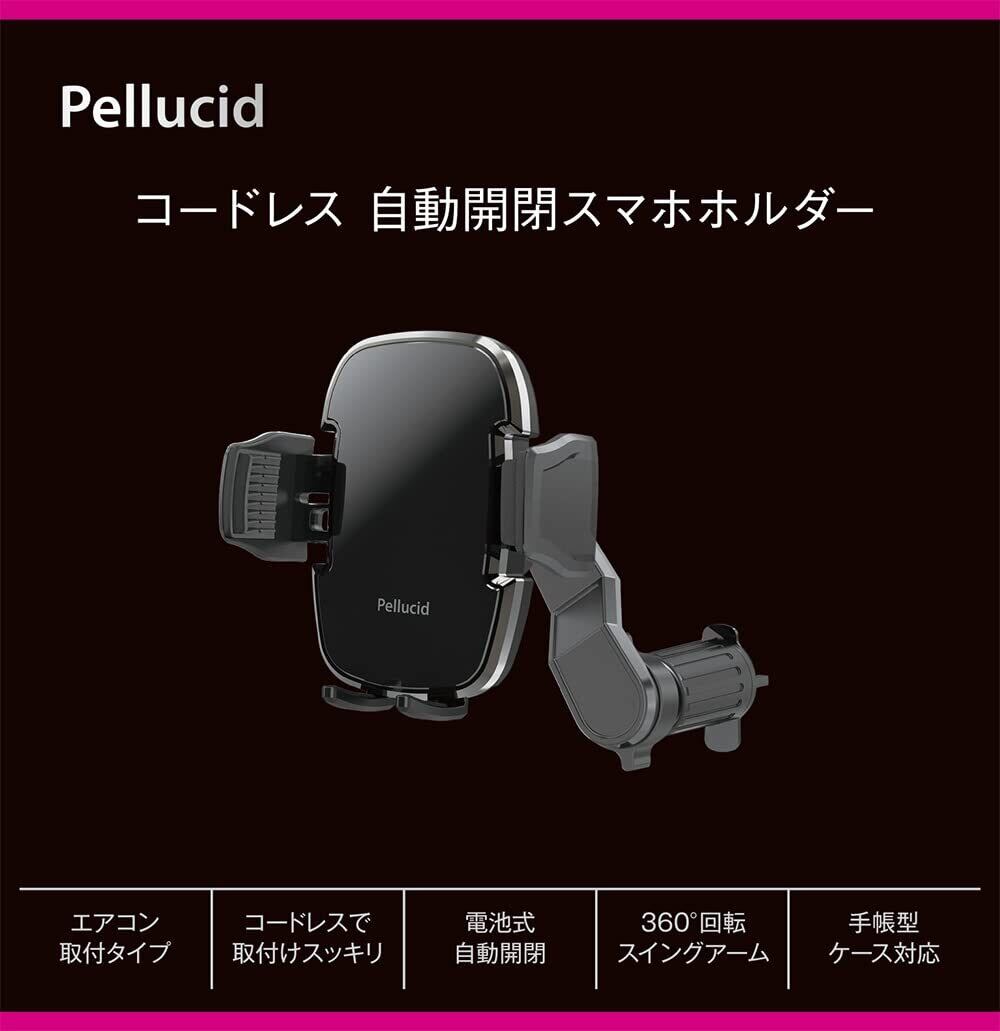 ペルシード(Pellucid) 車内用品 スマホホルダー コードレス自動開閉スマホホルダー エアコン吹き出し口固定タイプ PPH2210