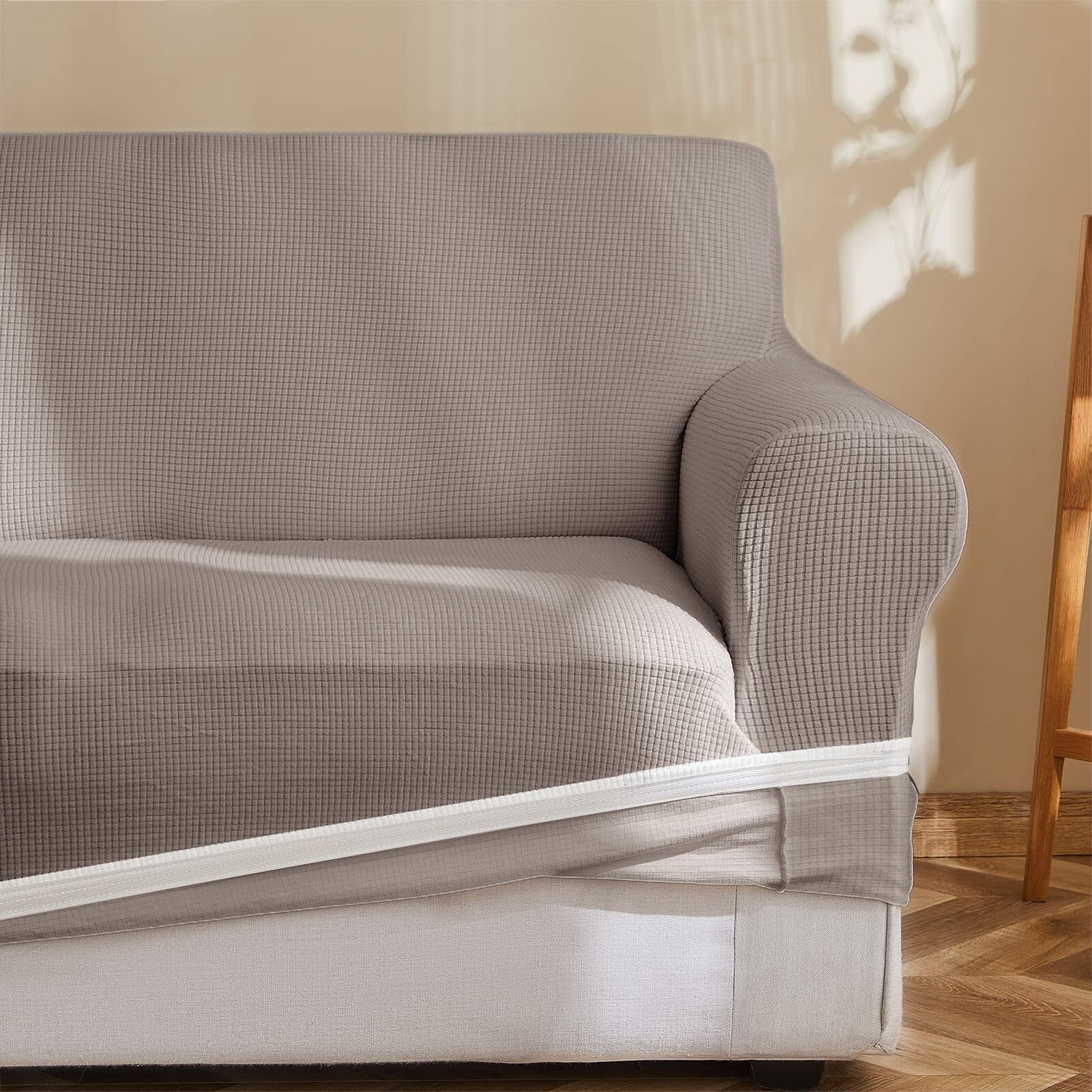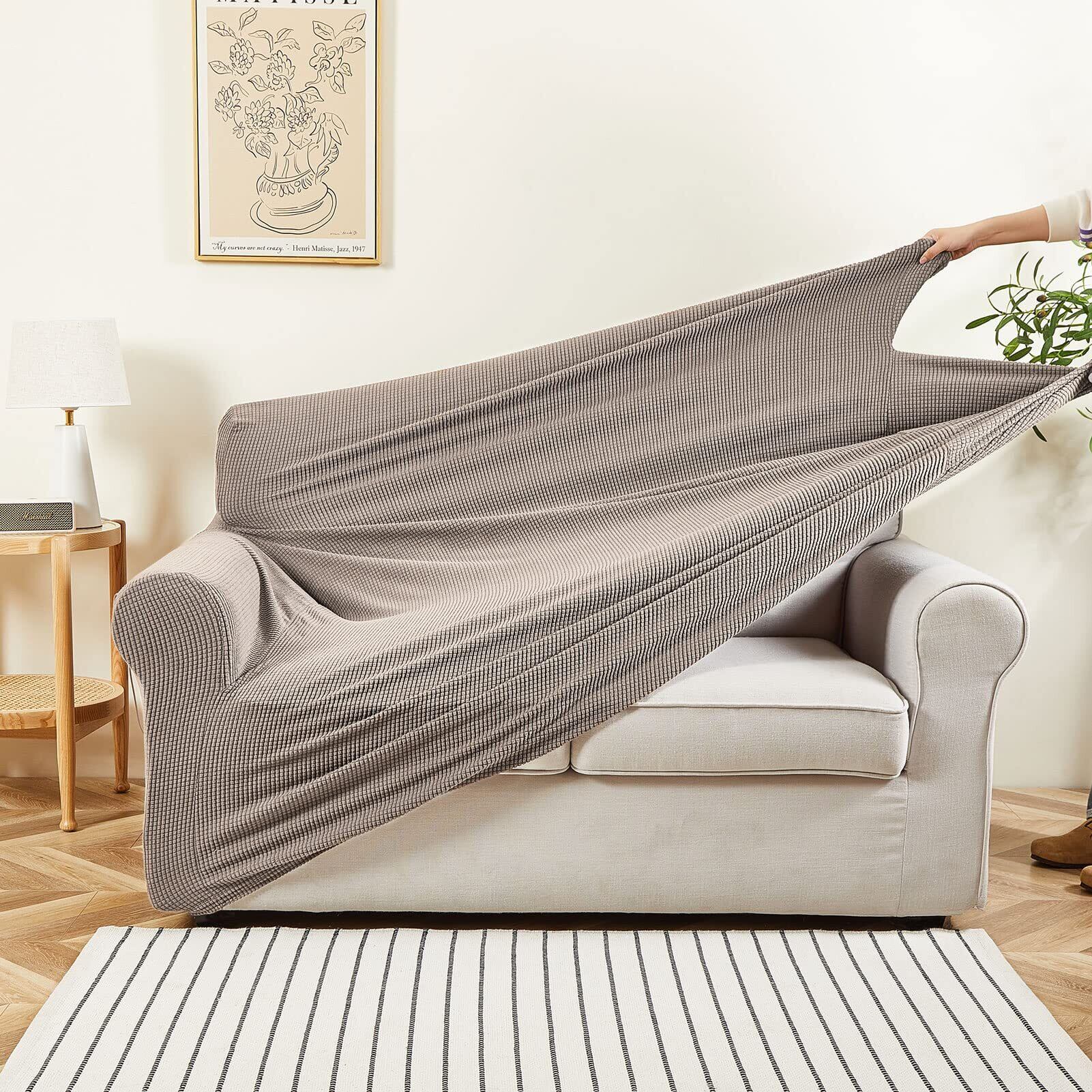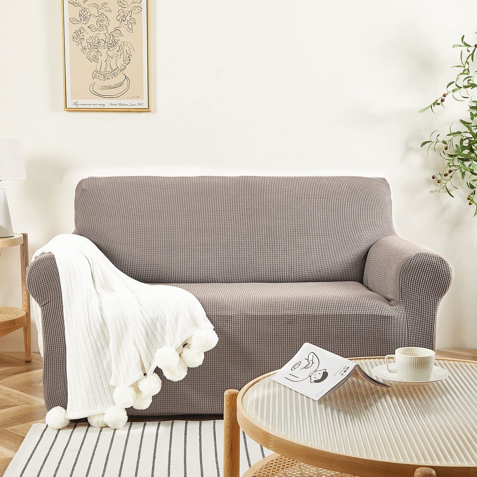 【在庫セール】Topfinel ソファーカバー 2人掛け 肘付き 無地 北欧風 ストレッチ フィットタイプ 伸縮素材伸び良く 滑り止め 柔らかい 犬 猫 傷 防止 超便利 四季適用(タウプ) | gsmshop