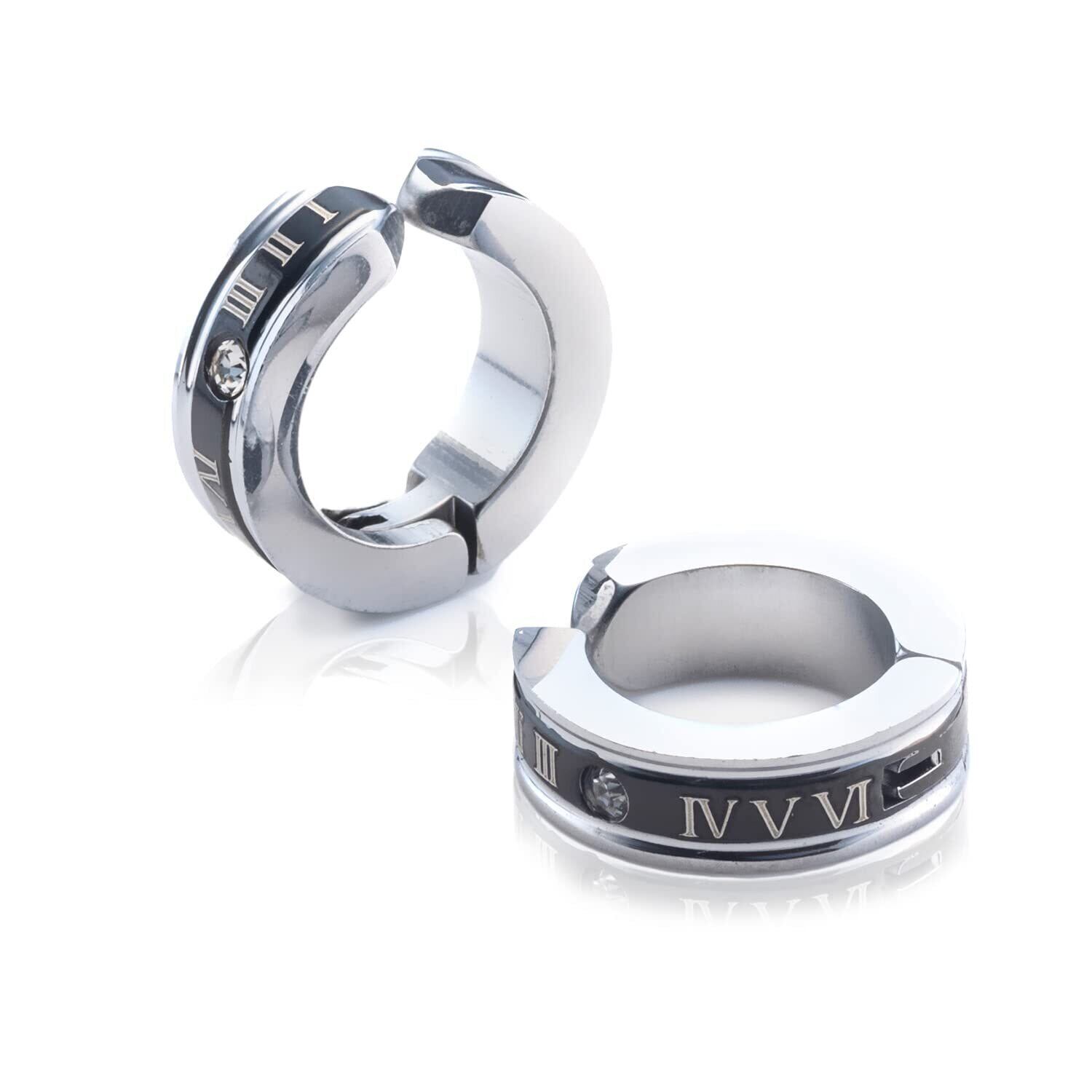 [Puente] フェイクピアス メンズ レディース ステンレス イヤリング フープイヤリング 両耳セット ローマ数字 フープ リング ノンホールピアス