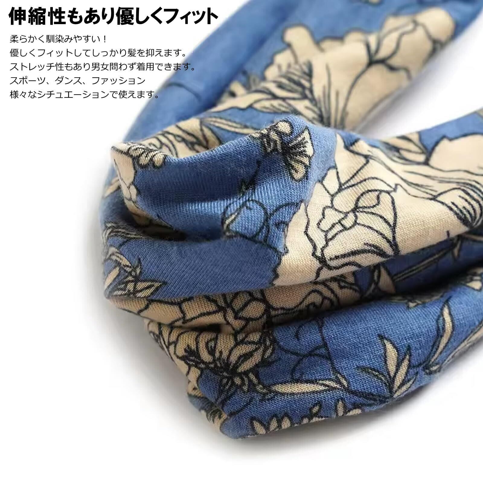 テニス、サイクリング、ランニング、ウォーキング、フィットネス、ヨガなどスポーツの際汗止め、洗顔、家事、調理、メイクの際、入浴後、業務の際、寝る時などの髪留めや髪押さえとして、ダンス、イベント、衣装、お出掛け時のファッションアイテム、ヘアアクセサリーとしてなど、様々な場面で活躍可能なヘアバンドです。
