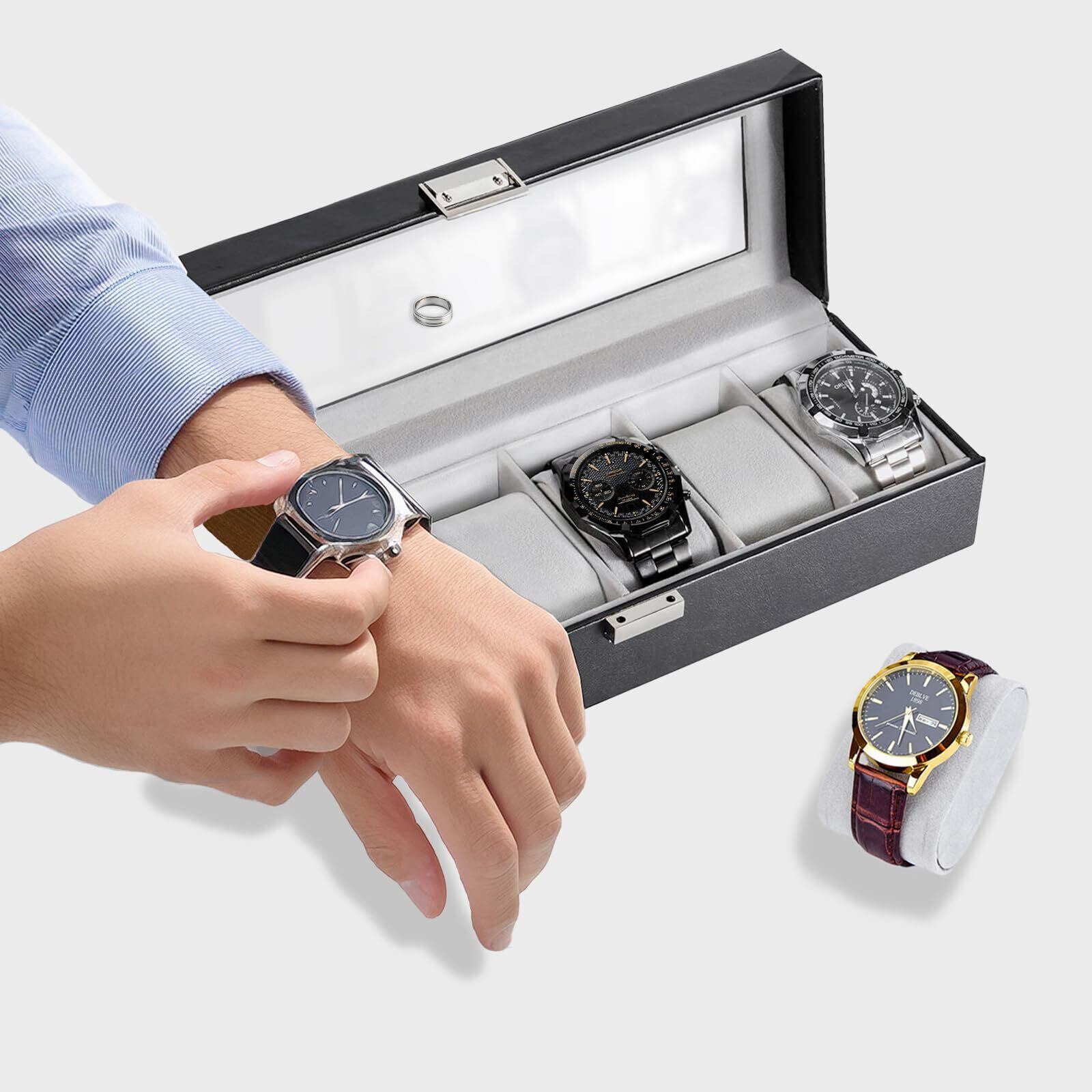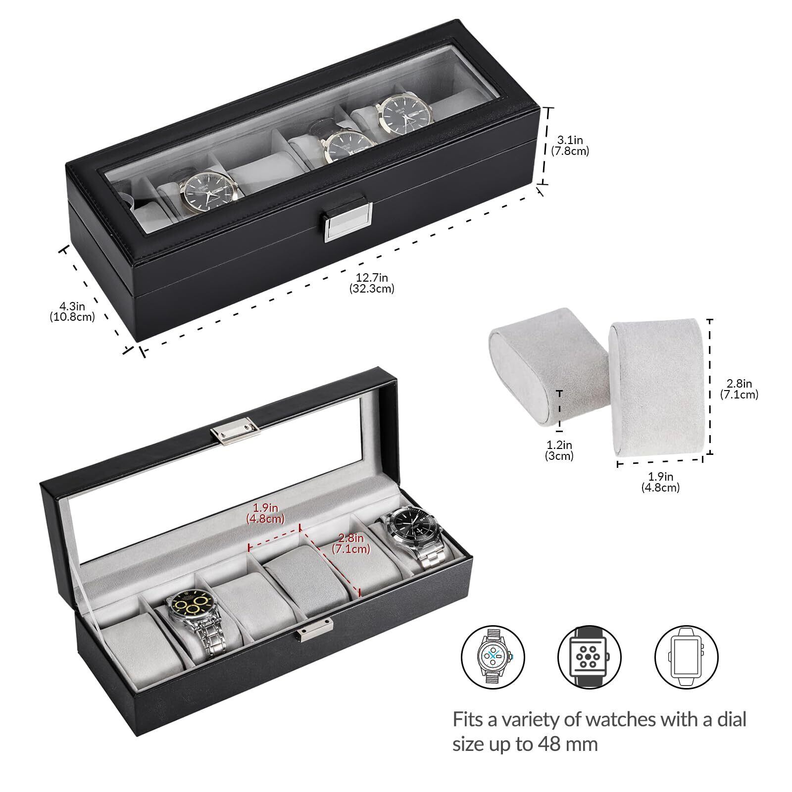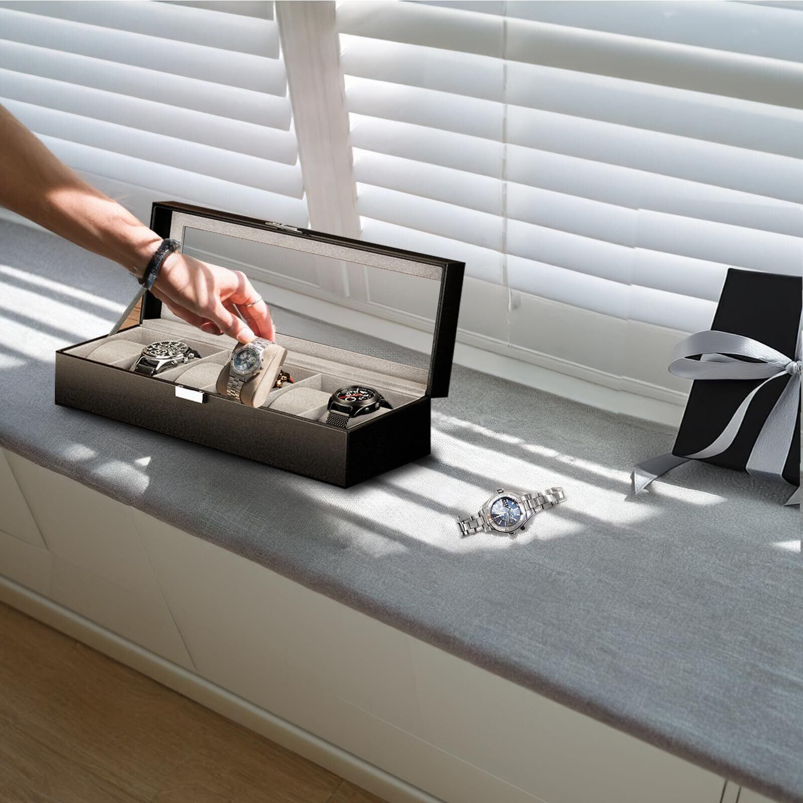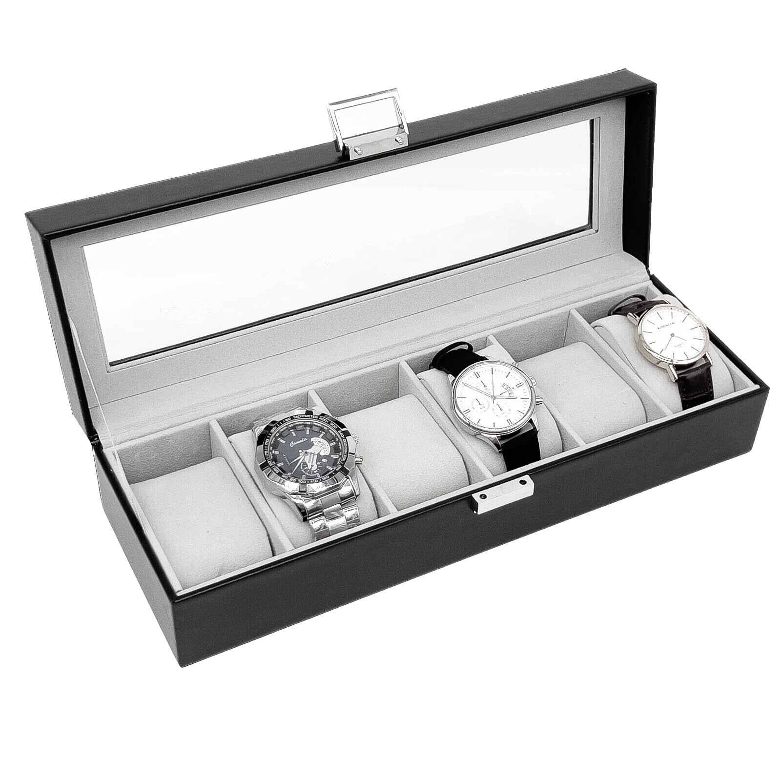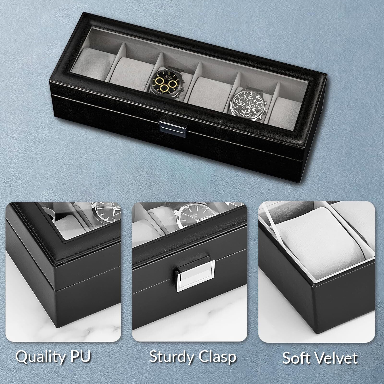 Mocamoro 腕時計ケース 6本用 ウオッチボックス 男性 高級 時計コレクション 透明ガラス天板 ディスプレイ プレゼント