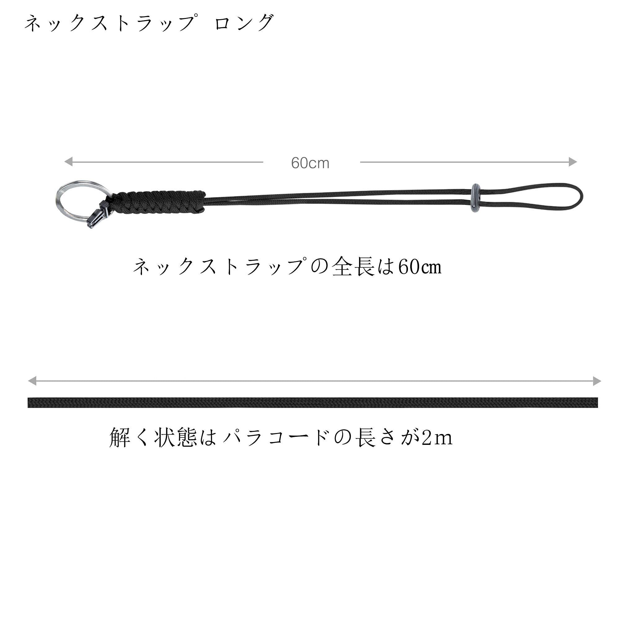 ③ネックストラップの全長は60cm、ボタンで長さを調整することができます。