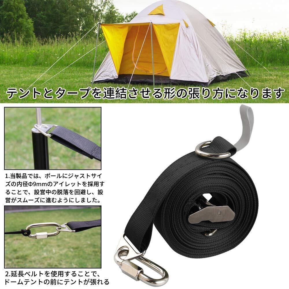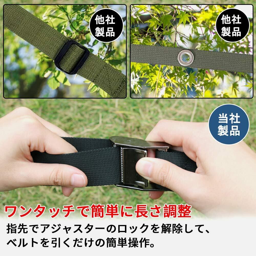 【簡単に長さ調整】たった3秒で長さ調整できる,ボタンを押して引くだけの簡単操作!アジャスターストラップ付きで長さの調整が可能。固定間隔の穴のある他の製品とは異なり、この製品は自由に長さを調整できます、自在金具で40~520cmまで無段階で調節が可能。ソロから大型テントまで自由にレイアウトできます。