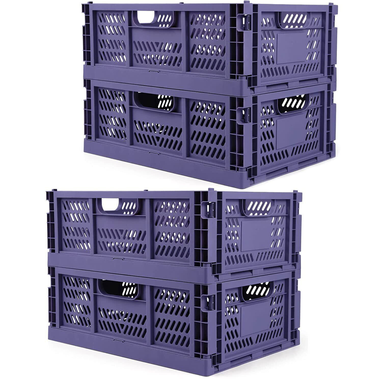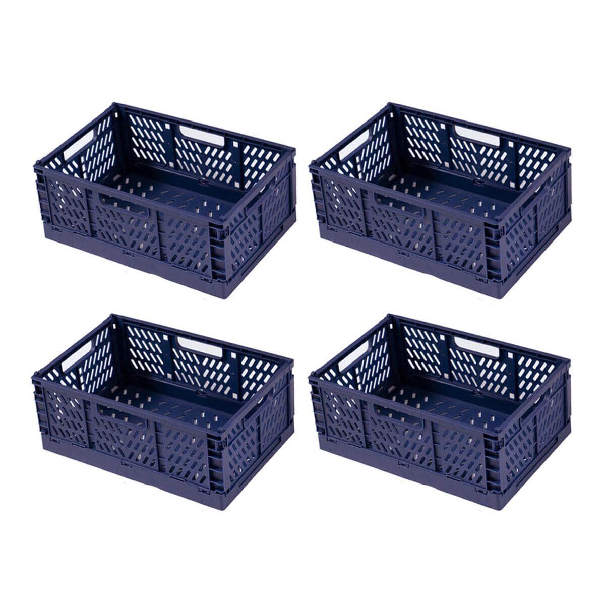 おりたたみコンテナ 18L 収納ボックス 2個セット 折り畳み式 取っ手付き 積み重ね コンテナ 収納ケース 卓上 カゴ オリコン 組み立て簡単 幅30×奥行40×高さ15cm (ブルー 4点セット)
