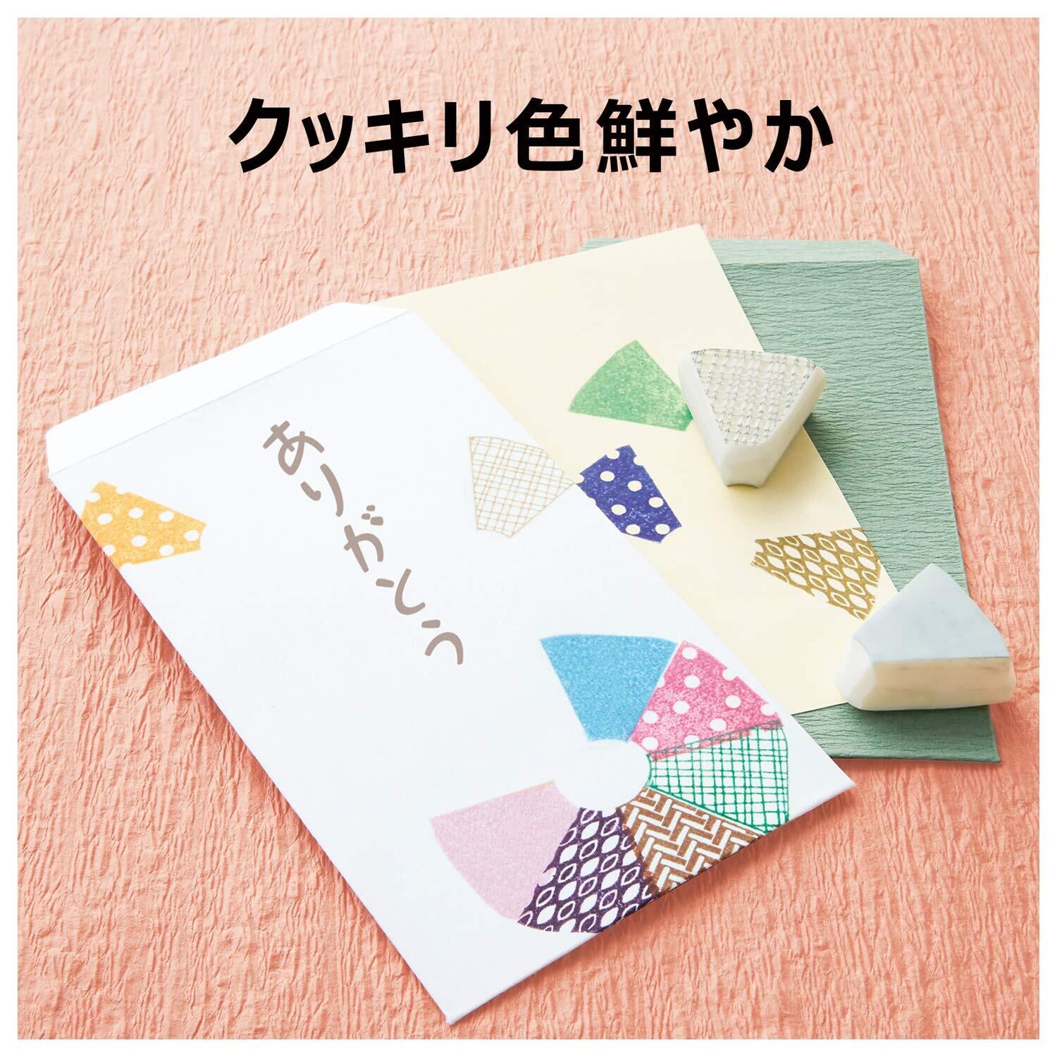 乾きが早くてクッキリ鮮やか。繊細な模様もしっかりキレイ。「いろもよう」なら消しゴムはんこやゴム印での作品づくりも楽々キレイ。日本の伝統色から生まれた多彩な色合いをお楽しみください。