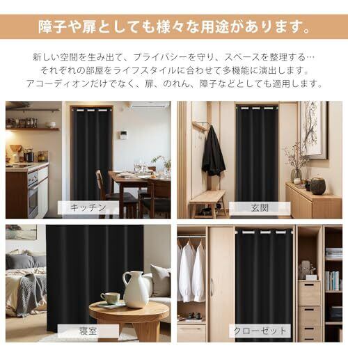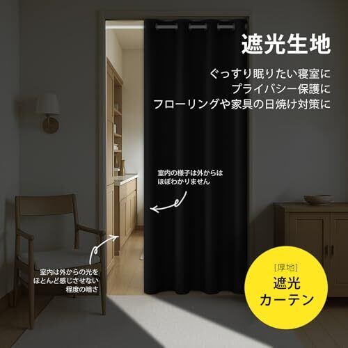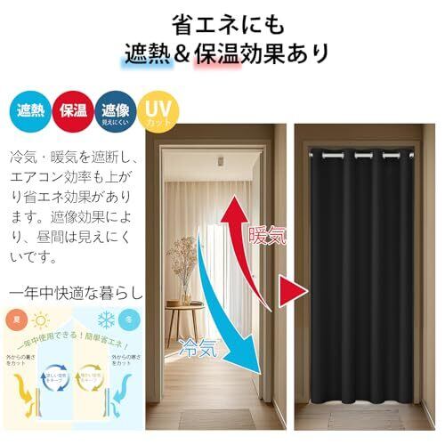 Topfinel カーテン 遮光 間仕切りカーテン 断熱 幅100cm 丈180cm 1枚入り ブラック ハトメ型 突っ張り棒 カーテン 仕切りカーテン ドアカーテン 目隠し 玄関 キッチン リビング