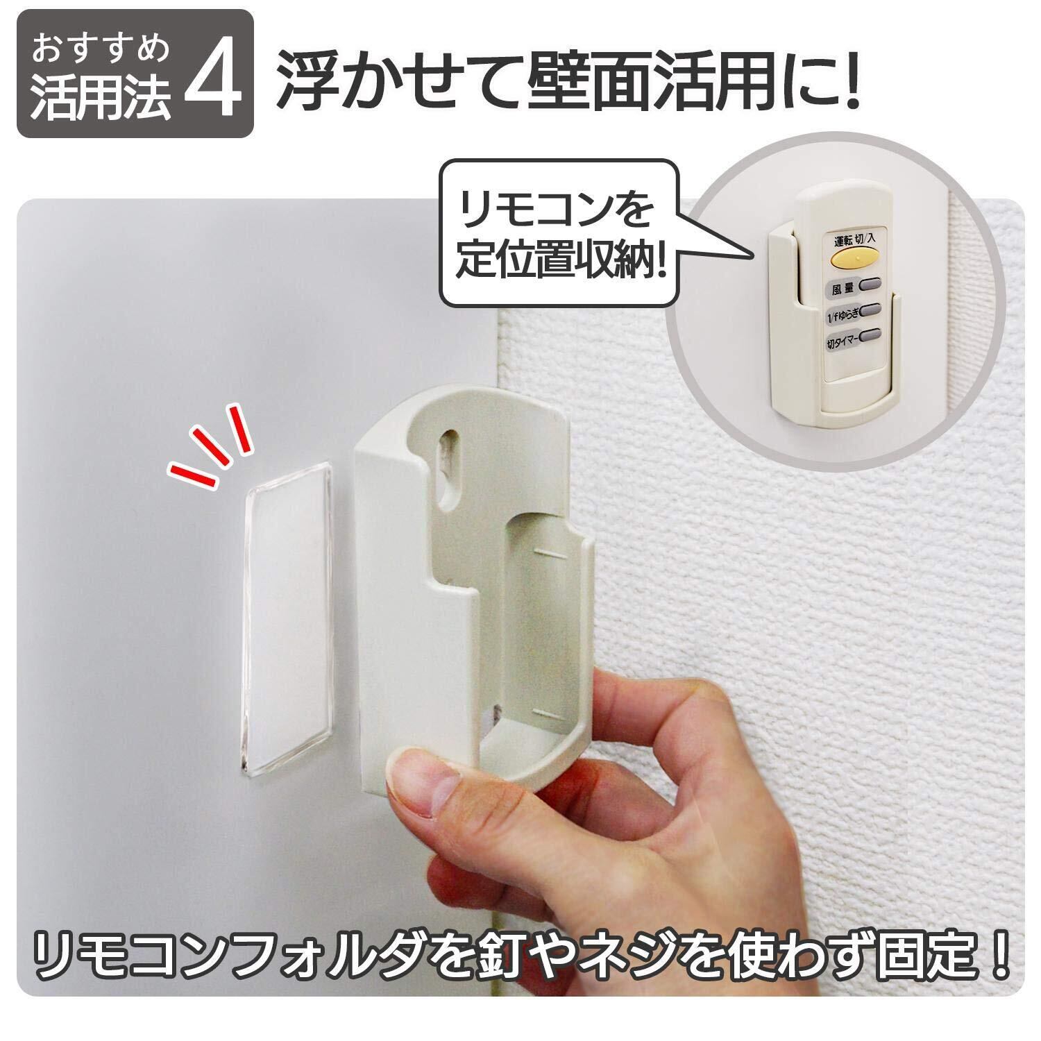 釘やネジが打てない壁面にリモコンフォルダを固定すれば、リモコンを浮かせてすっきりと収納できます。