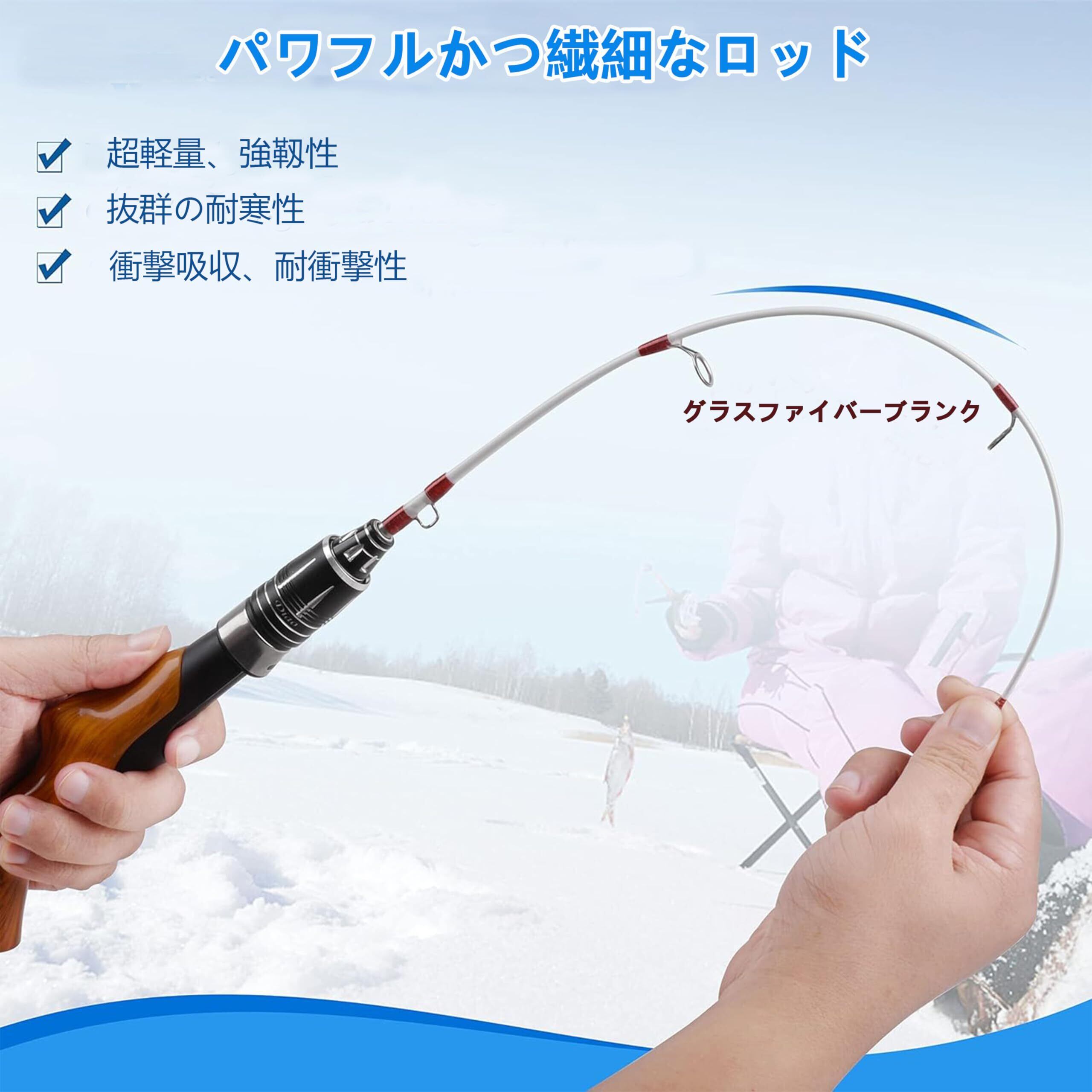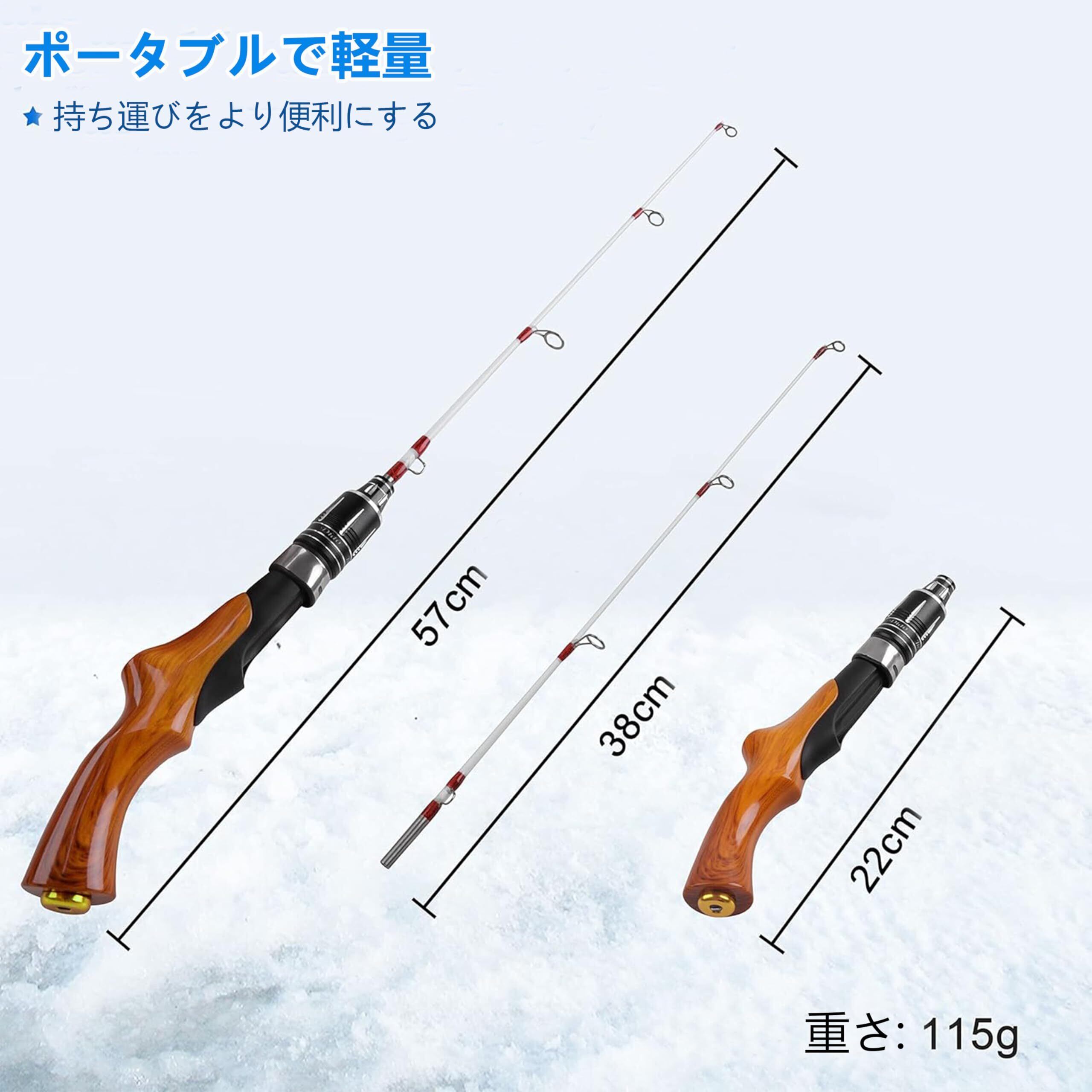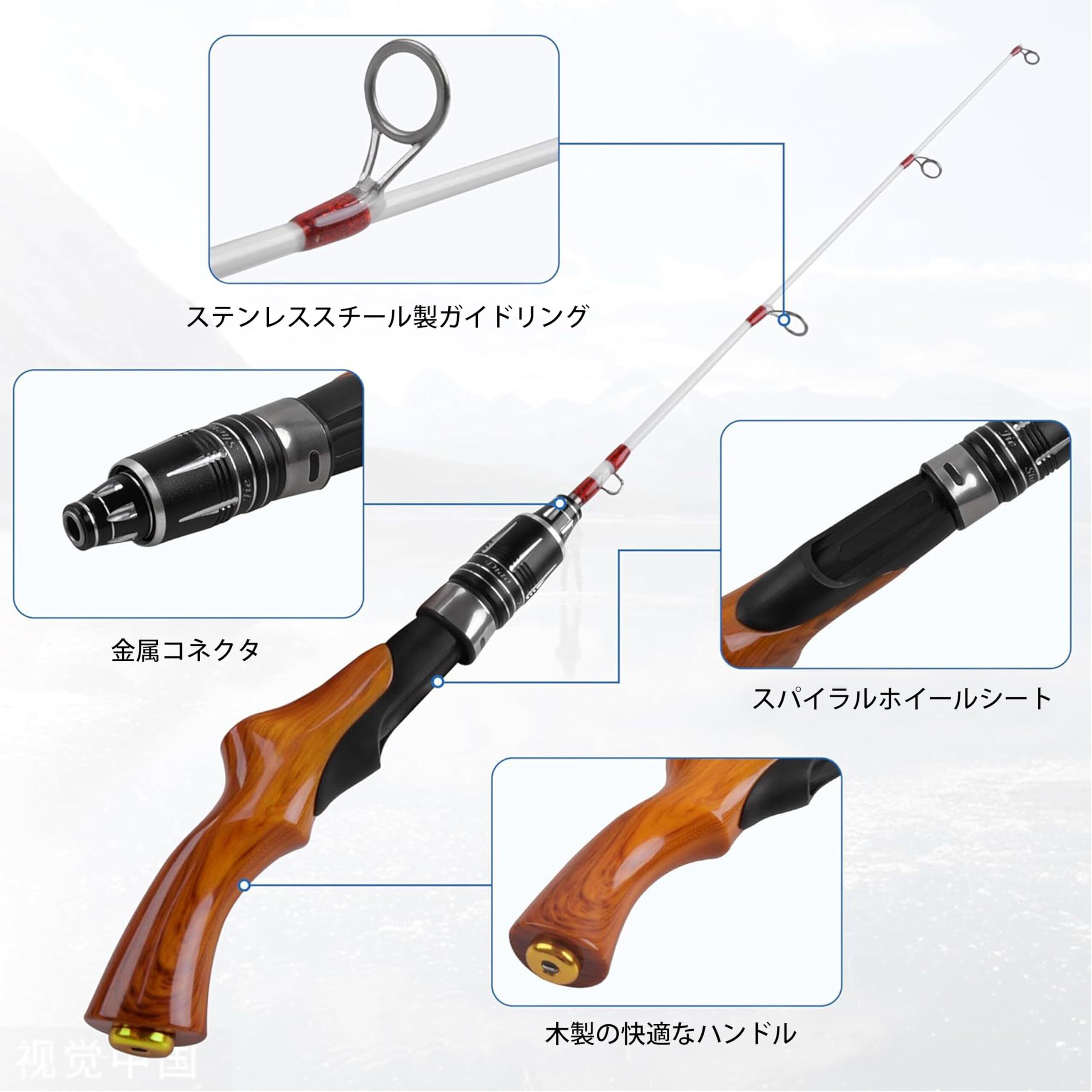 釣り竿 穴釣り 氷釣り 仕舞寸法59cm 短竿 超コンパクトロッド 並継式 ミニ釣りロッド 硬調 テトラ 堤防釣り 木目調ハンドル