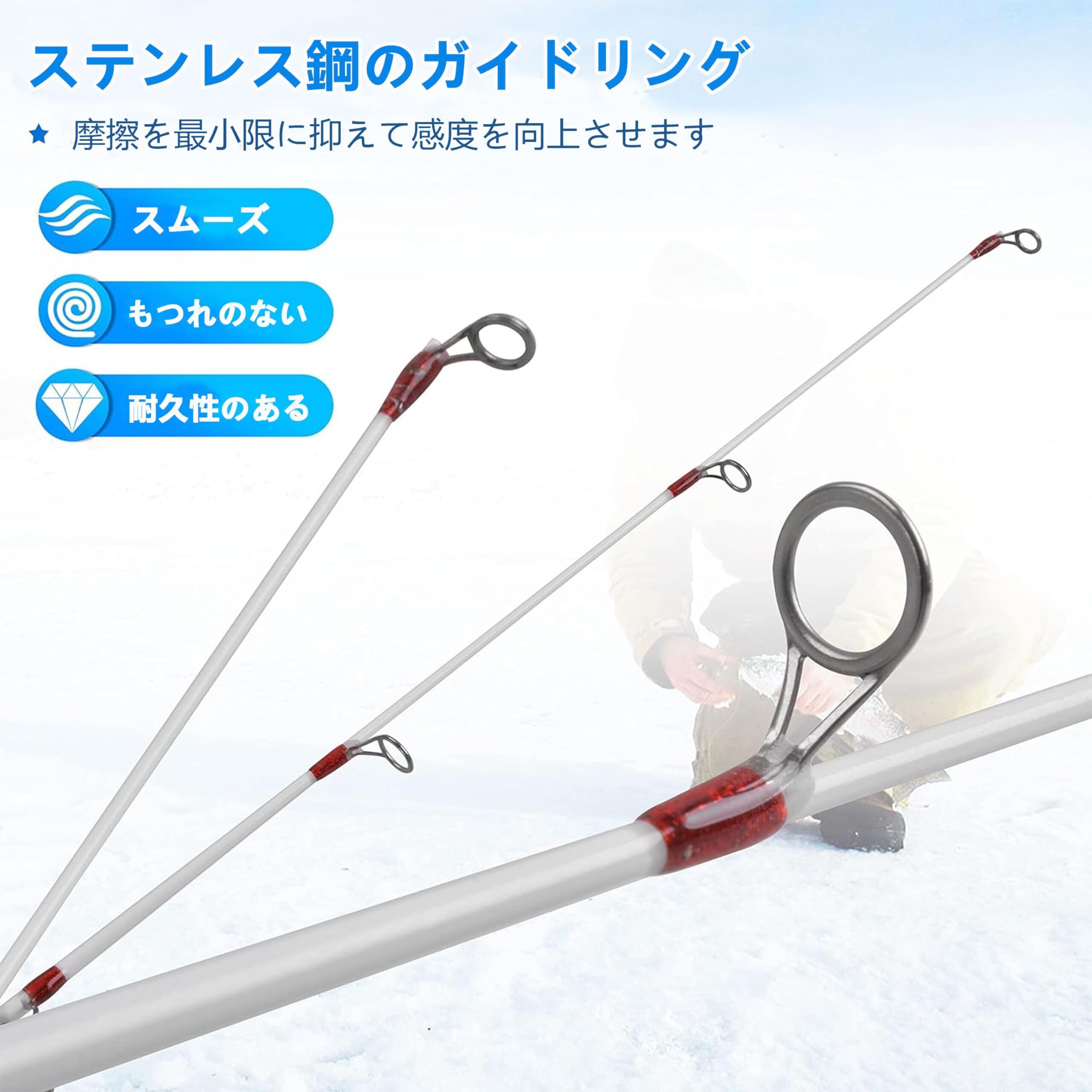 【機動性】大きなテトラの上を移動したり氷釣りなどの穴釣りする時、ポイントについたらシュッと使えるようなコンパクトな竿を持つと。
