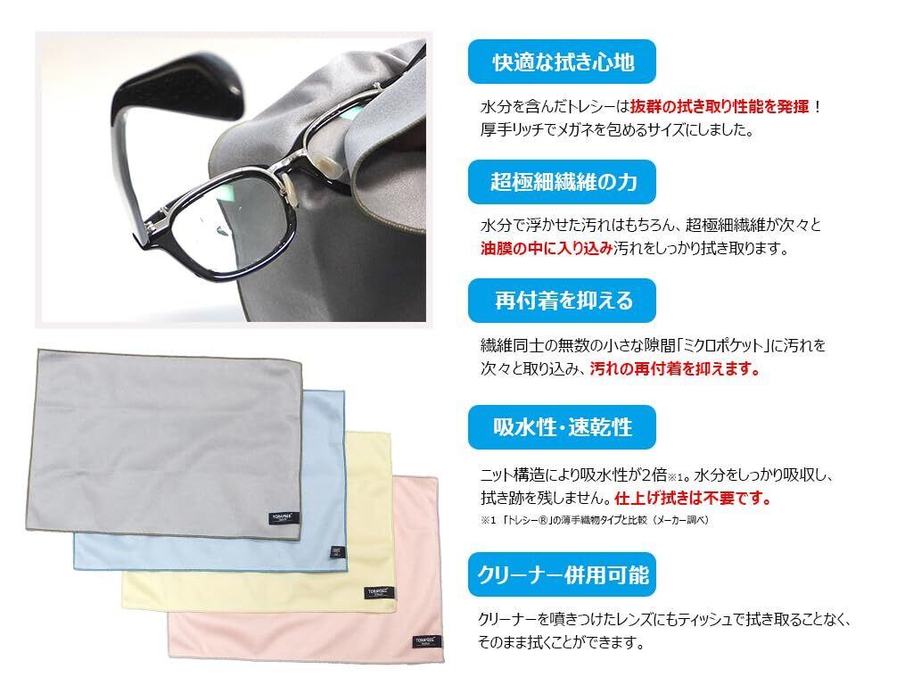 水分を含んだトレシーは抜群の拭き取り性を発揮! 厚手ニットタイプでメガネを包めるサイズで作られています。