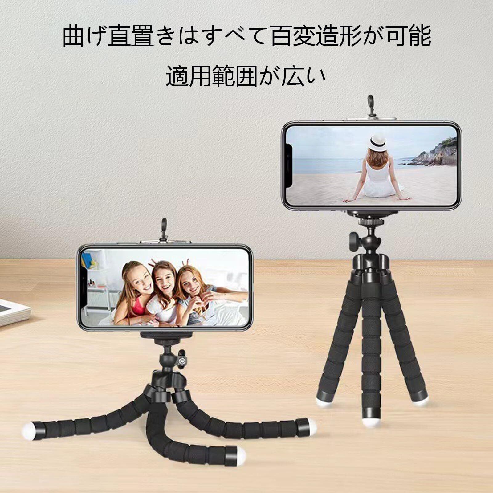 スマホ 三脚スタンド スマホ三脚 くねくねスタンド 360度回転しiPhone/Android/デジタルカメラ/ビデオカメラ/プロジェクター/自撮り/写真撮影などに対応し ブラック