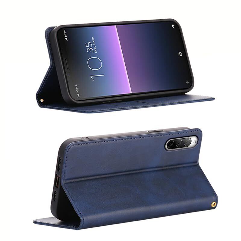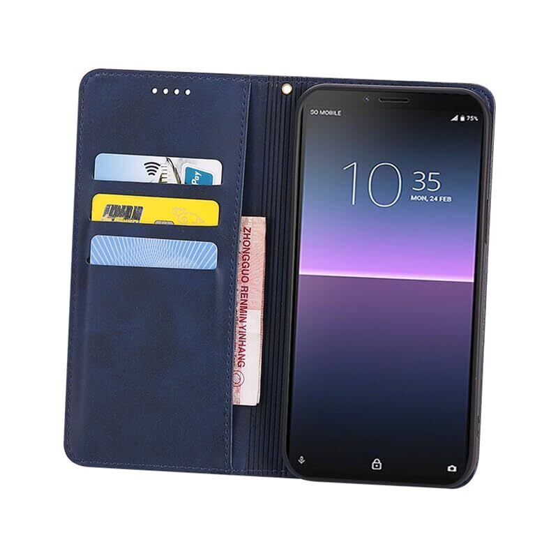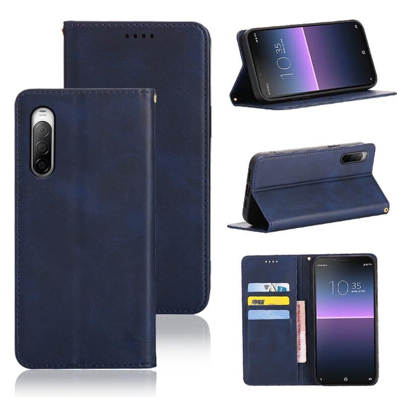 Xperia 10 II ケース 手帳型 エクスぺリア10 II SO-41A SOV43 手帳型ケース Xperia 10 II カバー 手帳型 PUレザー カード収納 財布型 耐衝撃 ケース マグネット スタンド機能付き 5色(Xperia 10 II SO-41A SOV43 ケース 手帳型) (深い青)