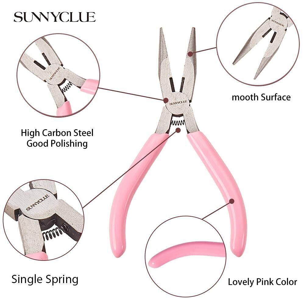 SUNNYCLUE ナイロンジョー 平ヤットコ 平ペンチ 先細ペンチ フラットノーズペンチ フラットペンチツール ジュエリーツール 切削工具 切断可能 ミニ精密 ピン曲げ ビーズ ワイヤー マルカン ジャンプリング 手芸用品 ニッパー プライヤー ペンチ クラフトツール プライヤーセット アクセサリー用 製作 ジュエリー作成用 炭素鋼 ピンク DIYクラフト ハンドメイド 手作り 工具 道具