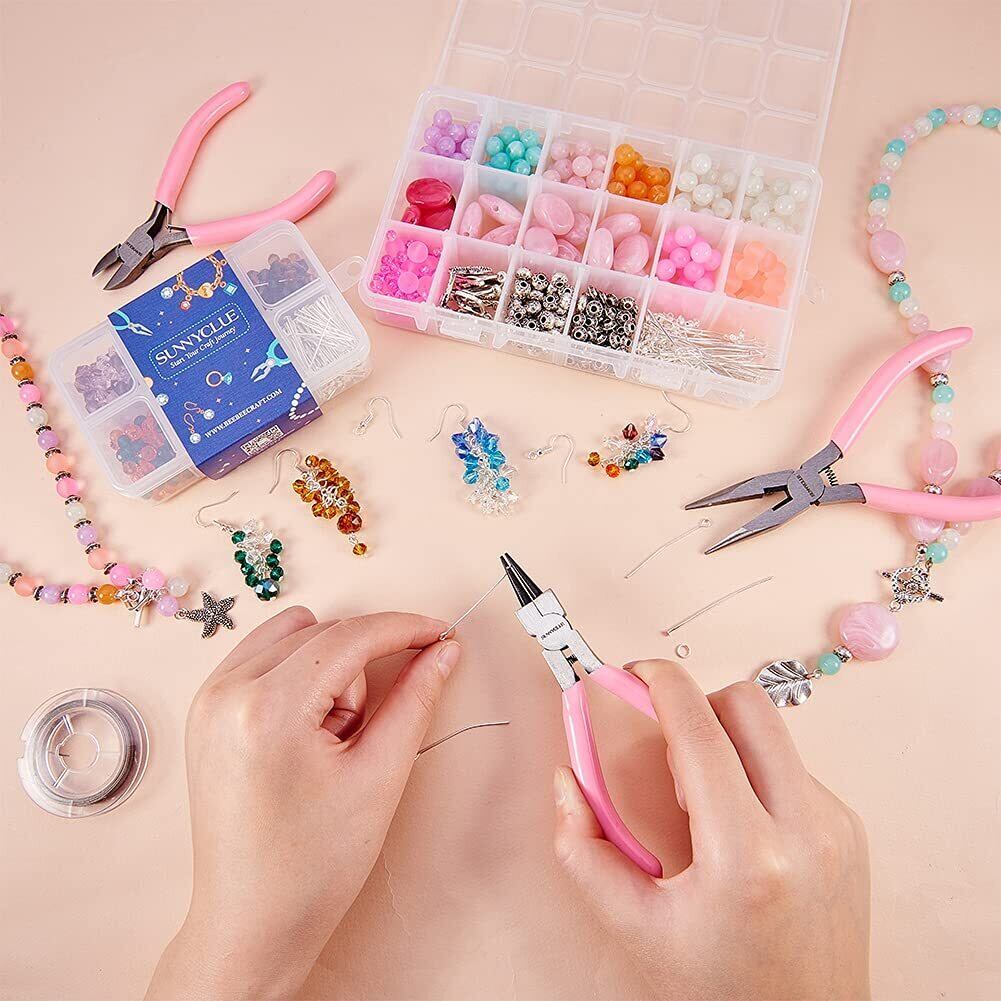 SUNNYCLUE ナイロンジョー プライヤー 平ヤットコ 平ペンチ 先細ペンチ フラットノーズペンチ フラットペンチツール ジュエリーツール 切削工具 切断可能 ミニ精密 ピン曲げ ビーズ ワイヤー マルカン ジャンプリング 手芸用品 ニッパー プライヤー ペンチ クラフトツール プライヤーセット アクセサリー用 製作 ジュエリー作成用 炭素鋼 ピンク DIYクラフト ハンドメイド 手作り 工具 道具