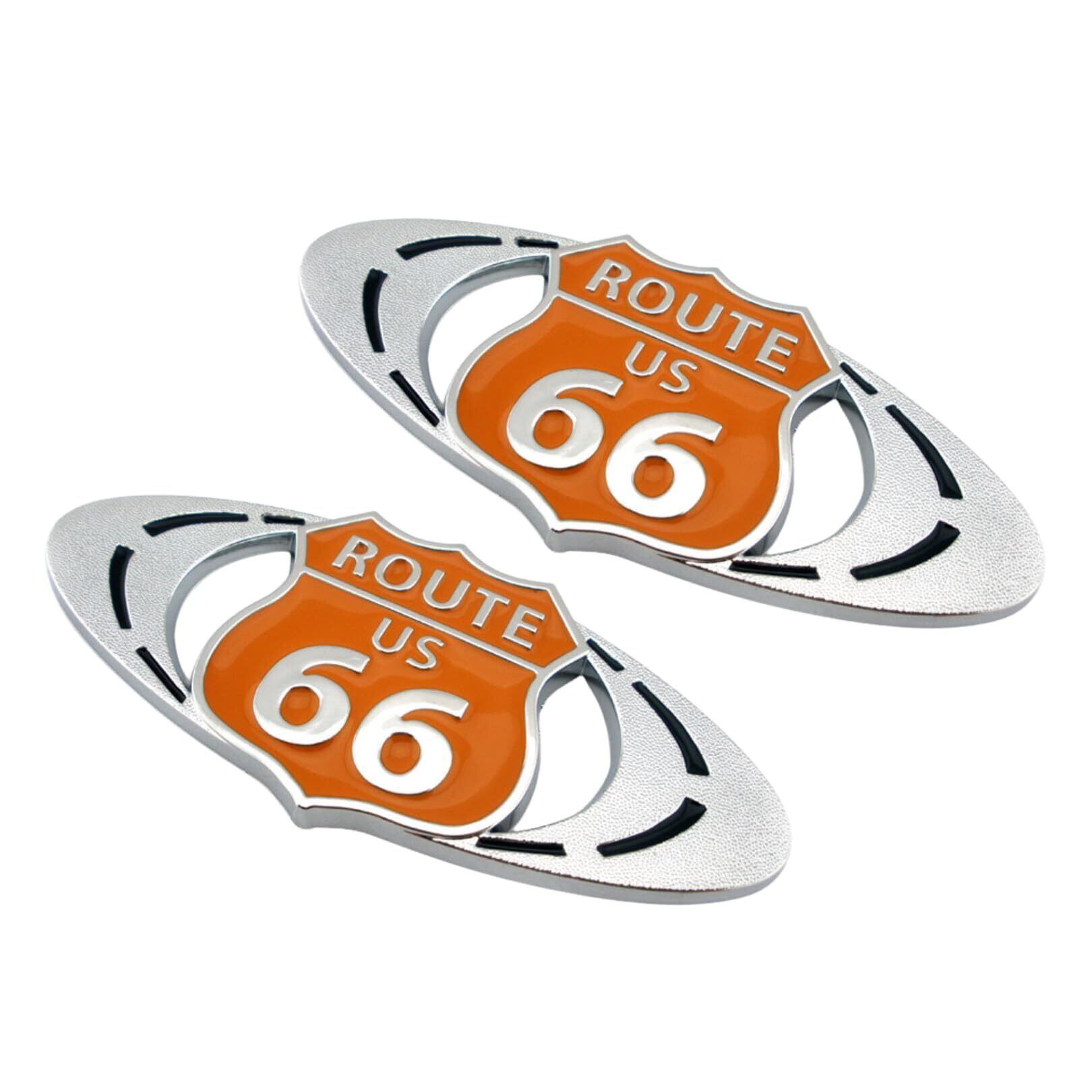 【アメカジが好きなあなたに】アメリカドライブの象徴として有名なRoute66(ルート66)の金属製ステッカー2個セットになります。レトロでヴィンテージ感あふれる立体エンブレムで、車やバイクに貼り付けるだけで、外装をアメカジスタイルにすることができます。