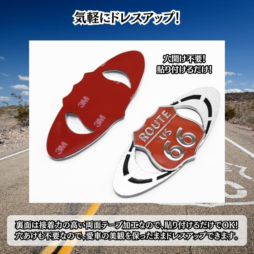 Charmoon エンブレム ルート66 ステッカー 車 バイク 金属製 レトロ デカール Route66 グッズ 2個セット (レッド/シルバー)