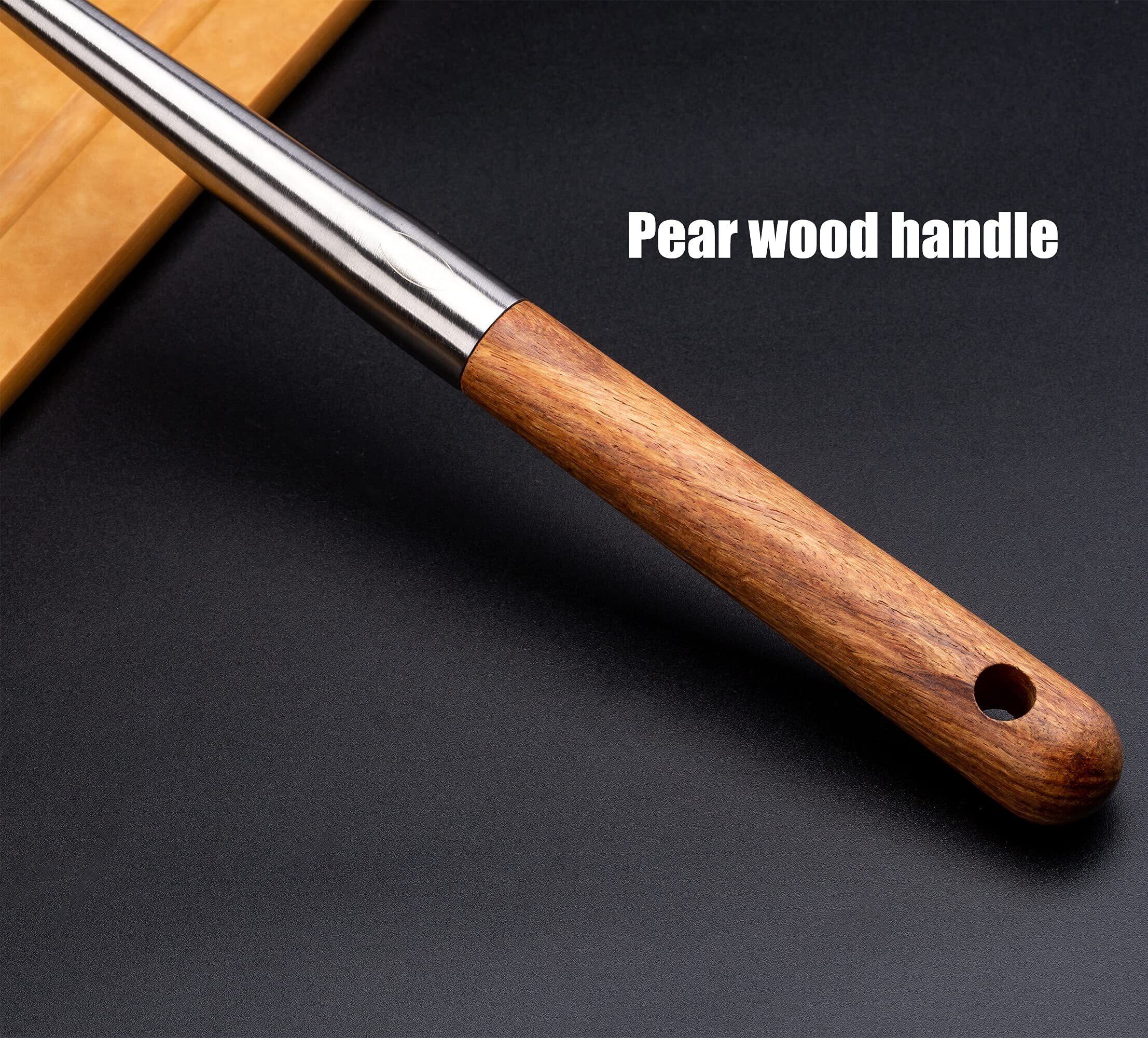 FJNATINH お玉 17インチの中華鍋用お玉 304ステンレス製中華鍋用ヘラ (ウォールナット- ひしゃく)