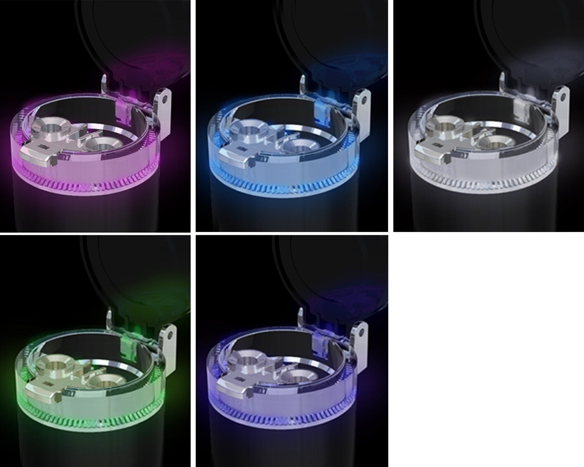 ベゼルを回転してピンク、ブルー、ホワイト、グリーン、パープルの5色の発光が選べます。