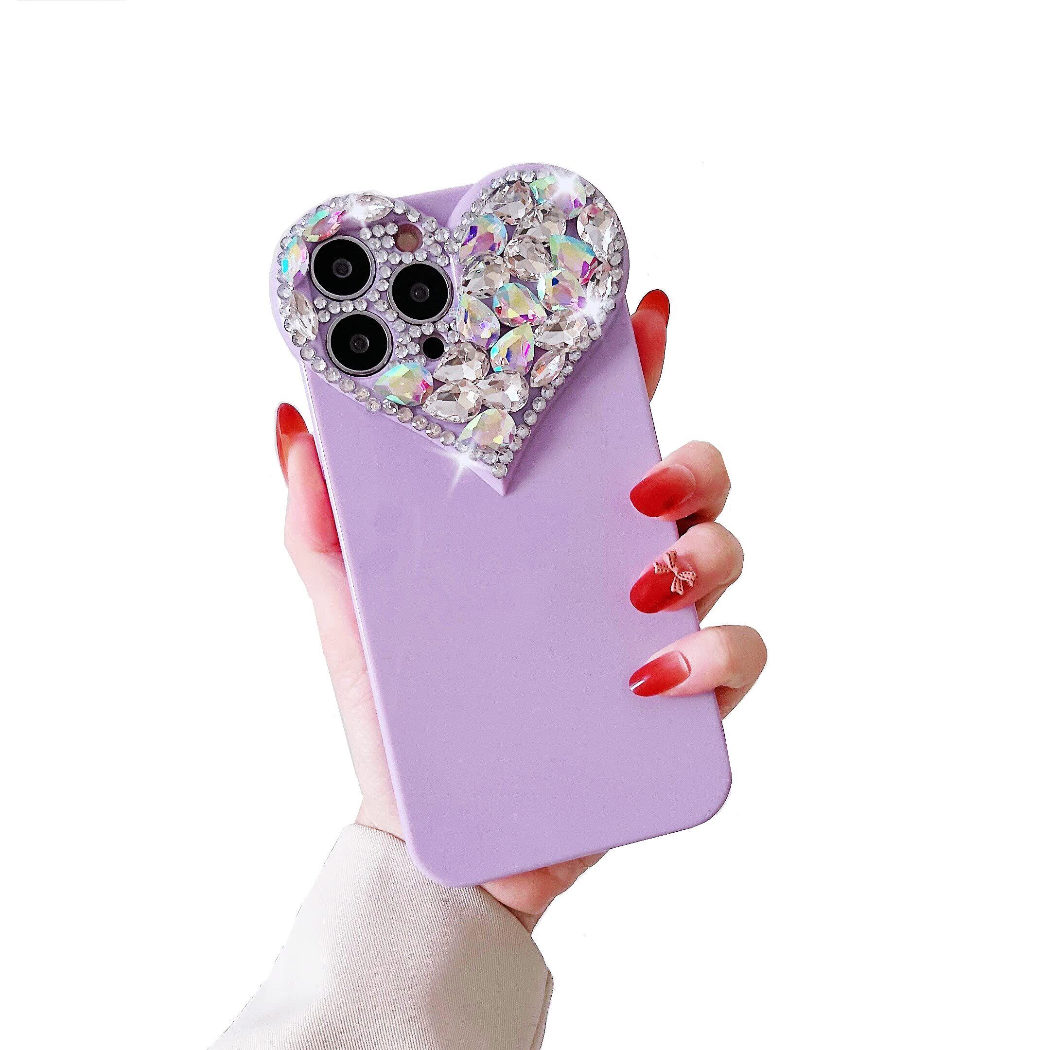 【特価セール】CrazyLemon 適用 iPhone X iPhone XS ケース おしゃれ かわいい ハート デザイン キラキラ ラインストーン 付き カメラ 保護 女性 人気 ソフト シリコーン ケース (for iPhone X/XS Case Cute Luxury) - パープル | gsmshop