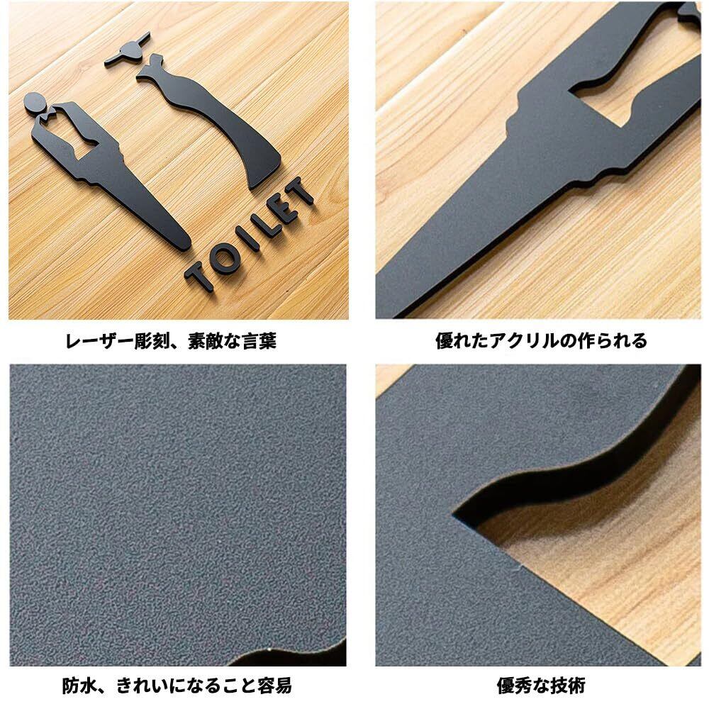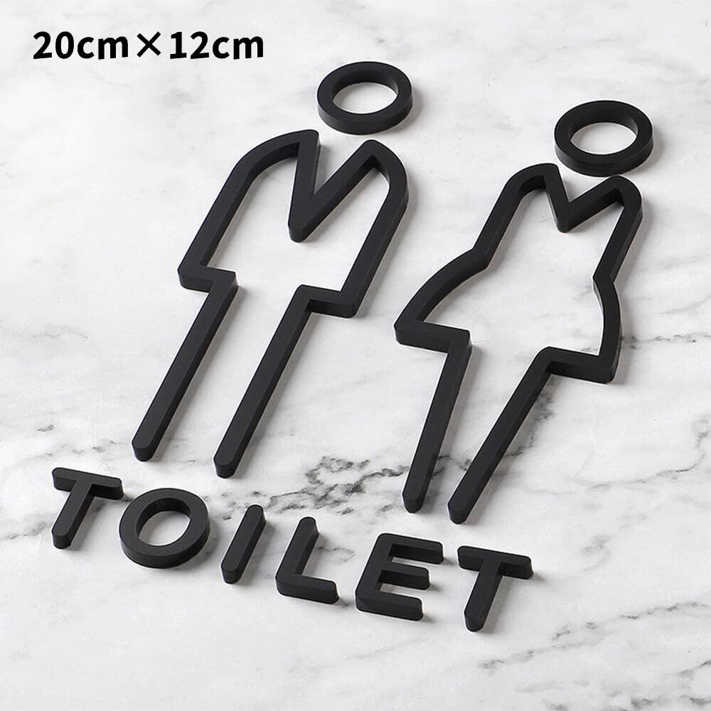 1.【サイズ】20cm×12cm 【カラー】ブラック 2.【材質】高品質アクリル製で質感がよく、立体感があります。薄手のシールを貼るより存在感があり、目を惹きます。レーザー切断は、バリやエッジの破損がなくスムーズで、滑らかに研磨されています。 3.【簡単貼るだけ】背面のテープを剥がして取り付ける、接着面を清掃してから取り付けてください。設置に手間がかからず誰でも簡単に取り付けることができるため。 4.【適用範囲】どんな場所にでも適用できます。トイレ、カフェ、レストラン、オフィス、ビル、公共施設、居酒屋、子供施設、老人ホーム、介護施設、仮設トイレなど幅広い場所でご活躍すること間違いなしです。 5.【気軽におしゃれな空間に早変わり】取り付けるだけで、空間にアクセントを与えてくれてその場所全体を上質でスマートな空間にしてくれます。