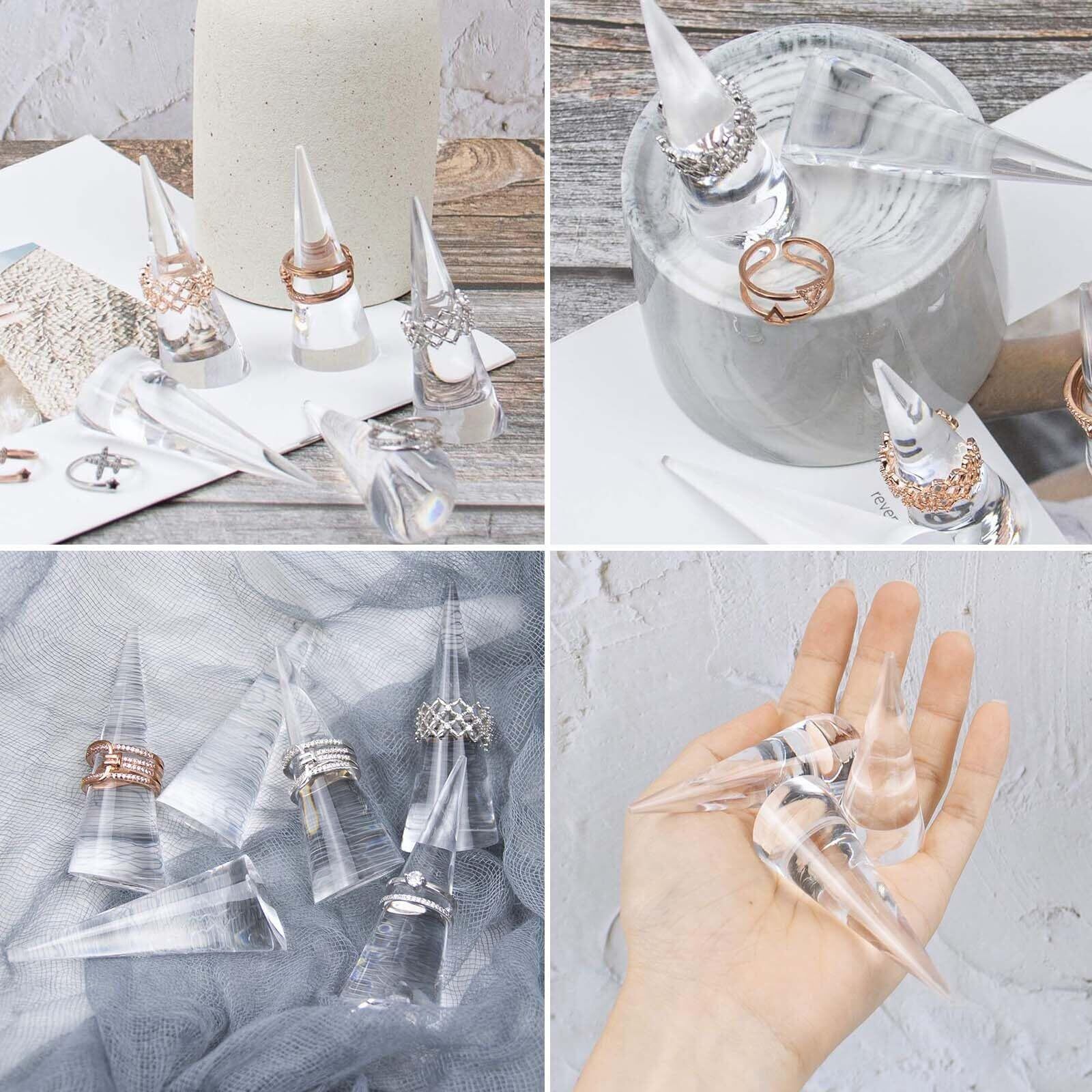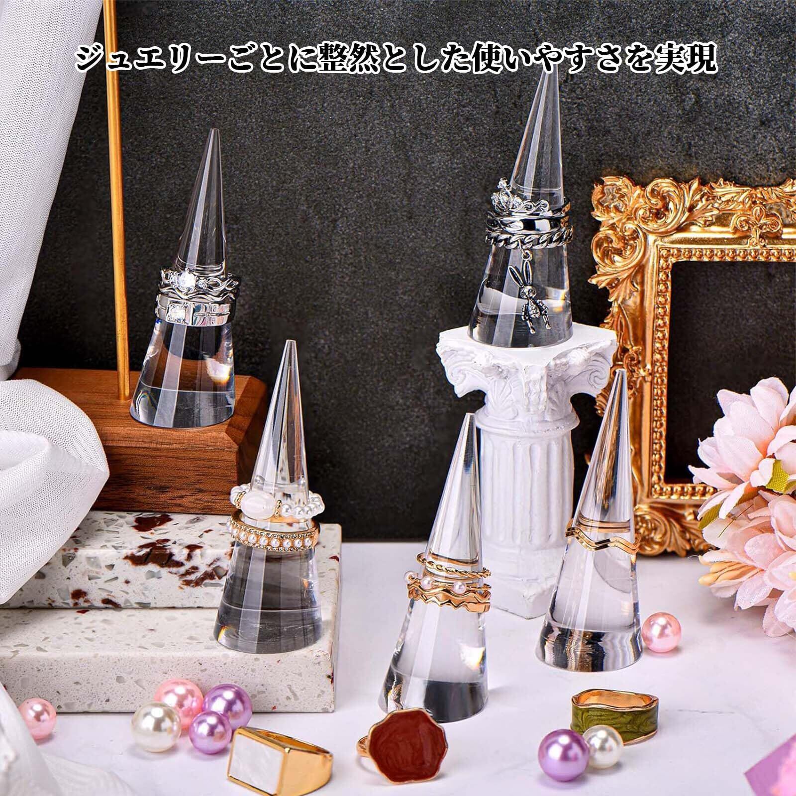 【在庫セール】EsiFare 指輪 リングスタンド リングホルダー 5個セット 透明 指輪 ディスプレイ 指輪置き 保管 整理 展示 アクセサリー収納 任意の寸法を適用 インテリア ジュエリーショップ ギフトショップ リング立て 円錐 | gsmshop