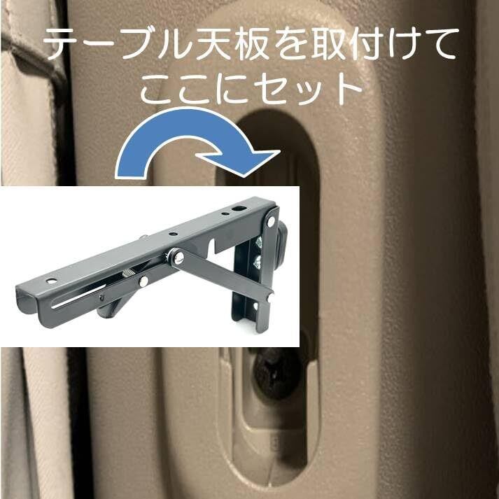 ハイエース・レジアスエースの純正仕切り棒を外した穴に取り付け、テーブルを設置可能なキャッチアダプター(マウント)テーブル作成キットです。 スマホなどちょっとした物置を作成することができます。 折畳みテーブルの土台をキャッチアダプタに垂直に取付けています。 垂直な取付けは結構難しいので、テーブル用途の方は組立て済のこちらの購入をお勧めいたします。 テーブル天板は付属しませんので、ホームセンターや等でお好みのテーブル天板や棚板をご購入頂きご作成ください。