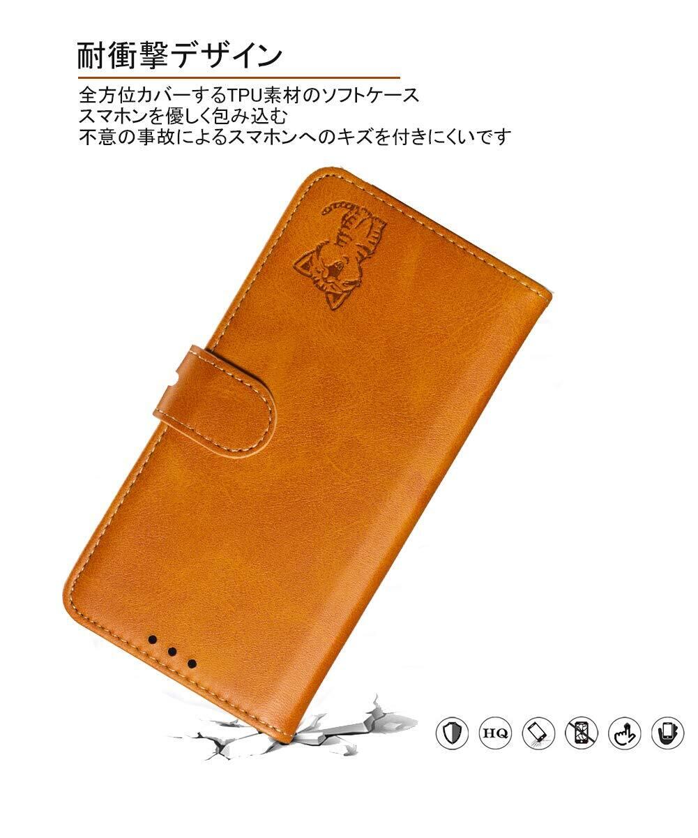 ❹【スマイル猫ちゃんのデザインと上質な素材】型押しの可愛い猫のモチーフと上品なレザーの組み合わせるケースであり、高級感ある色合いでちょっぴり大人なスマホケース。裏側ケースはソフトのtpuで仕上げられて、着脱も便利です。