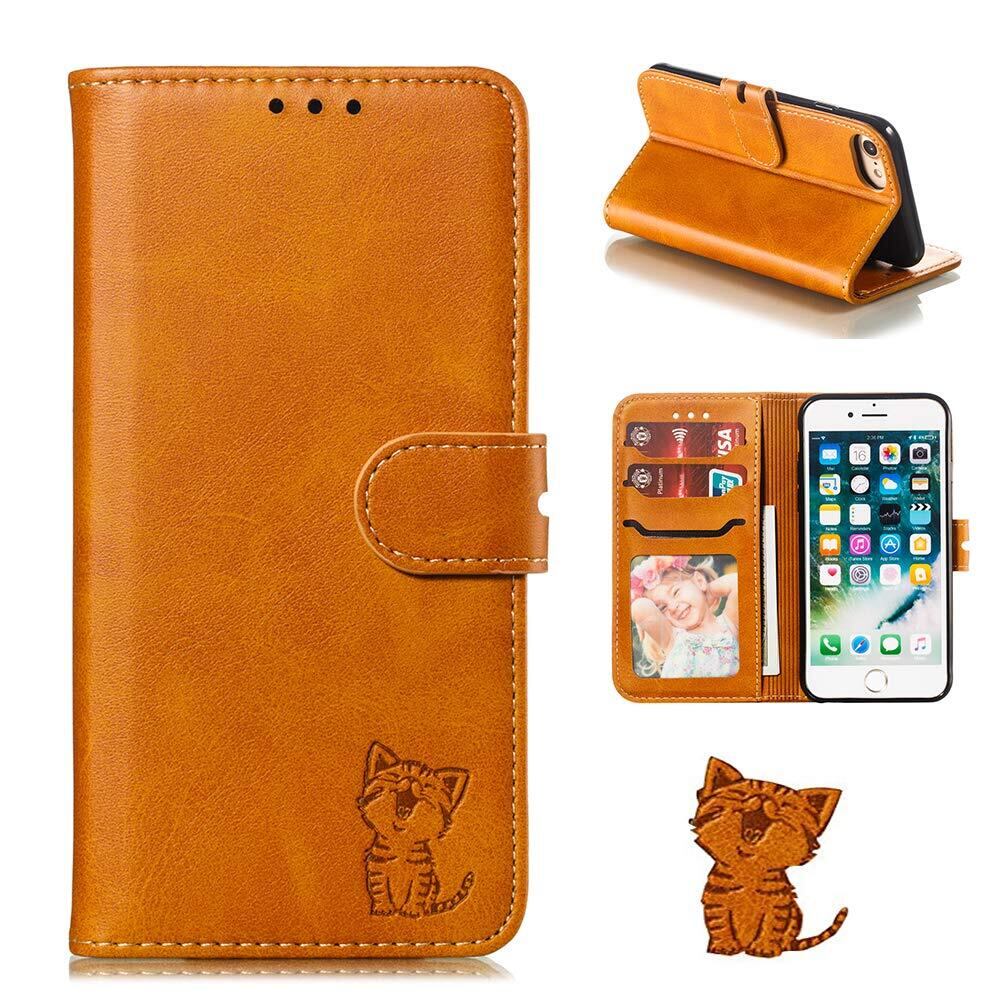 Phone SE 第2世代 第3世代 (SE2 SE3) iPhone 8/7/6/6s 通用ケース手帳型 スマイル 笑顔猫ちゃん スマホケース 携帯カバー ケータイ カード収納 財布付き カードホルダー ベルトマグネット スタンド機能 ネコ 薄型 防水 ノート型 (iPhone8/iPhone7/iPhone6/iPhone6S/se 2020 2022 4.7inch対応) ライトブラウン