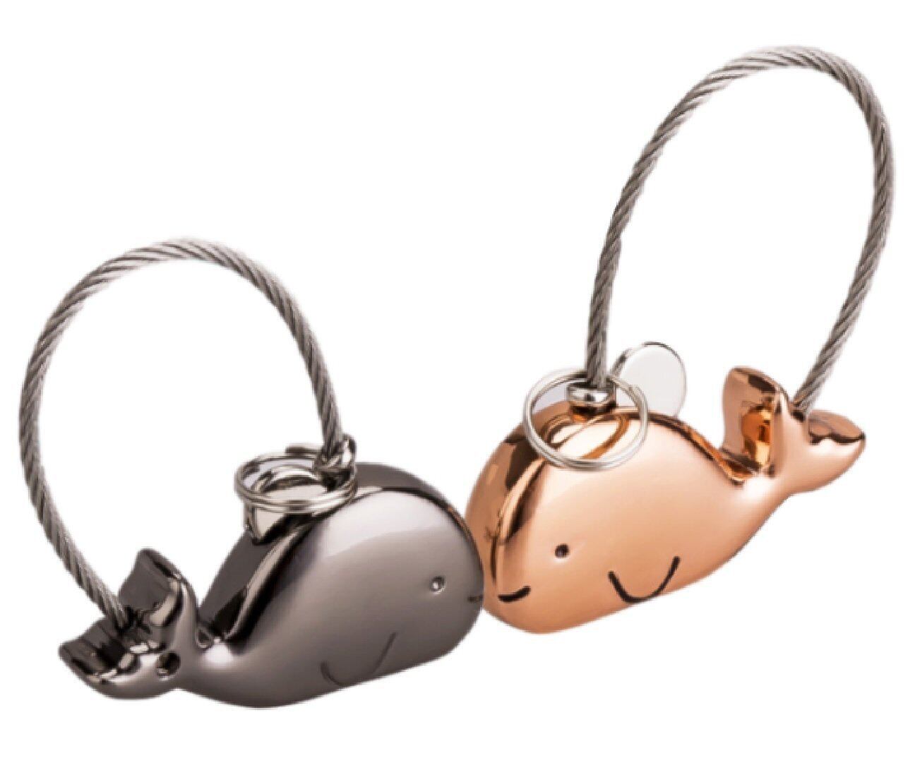 KLU ペア キーホルダー カップル お揃い キーリング 鍵 かわいい 動物 ブラック ピンクゴールド 2個セット (クジラ)