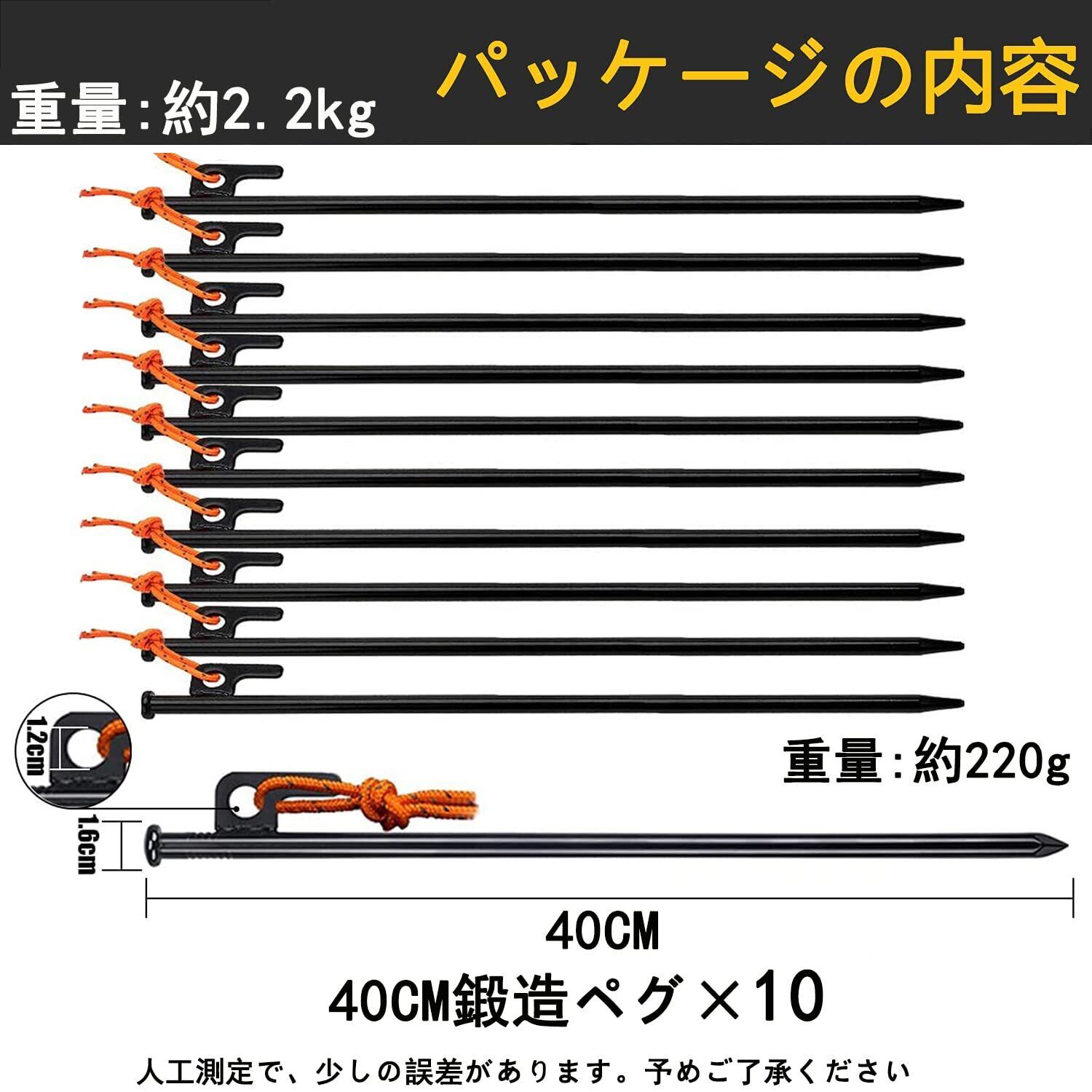 【 ペグセット】40cm10本のペグセットです。シーンに合わせて使い分けが出来ます。 万が一商品の数が足りない、間違っている場合がございましたら、ご連絡ください。