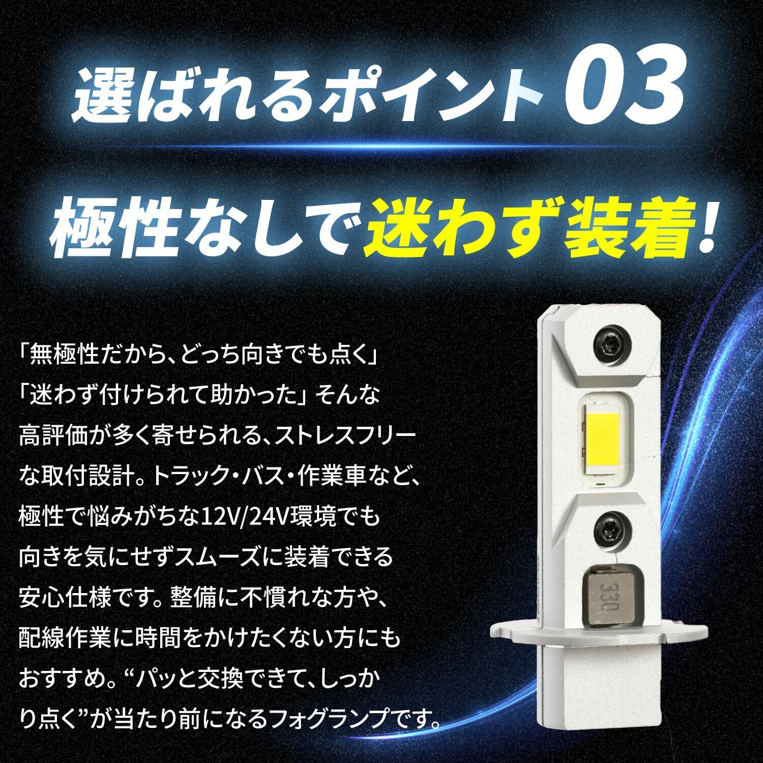 【極性なしで迷わず装着】「無極性だから、どっち向きでも点く」 「迷わず付けられて助かった」 そんな高評価が多く寄せられる、ストレスフリーな取付設計。 トラック・バス・作業車など、極性で悩みがちな12V/24V環境でも 向きを気にせずスムーズに装着できる安心仕様です。 整備に不慣れな方や、配線作業に時間をかけたくない方にもおすすめ。 **“パッと交換できて、しっかり点く”**が当たり前になるフォグランプです。