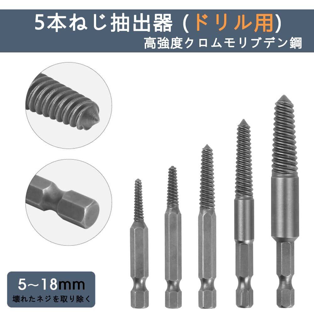 KOVOL 5本エキストラクター ネジ山補修キット なめたネジはずしビット ネジ山 潰れた なめた六角ボルト外し 破損したネジの除去 逆タップ 5-18mm