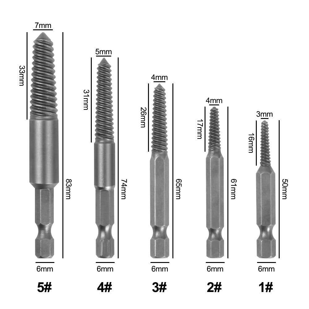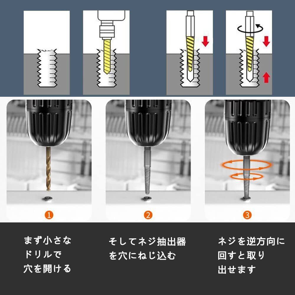【使いやすい】ドリルビットを使用してネジの頭に深い穴を開け、ネジエクストラクターを反時計回りに損傷したネジに戻して外します。さびた、壊れたネジを数秒で簡単に取り外すことができます。