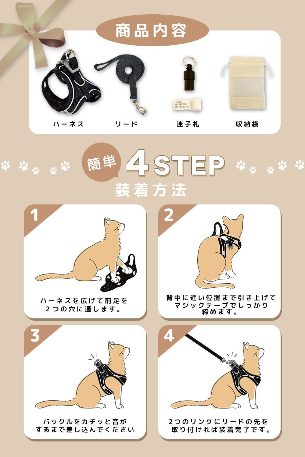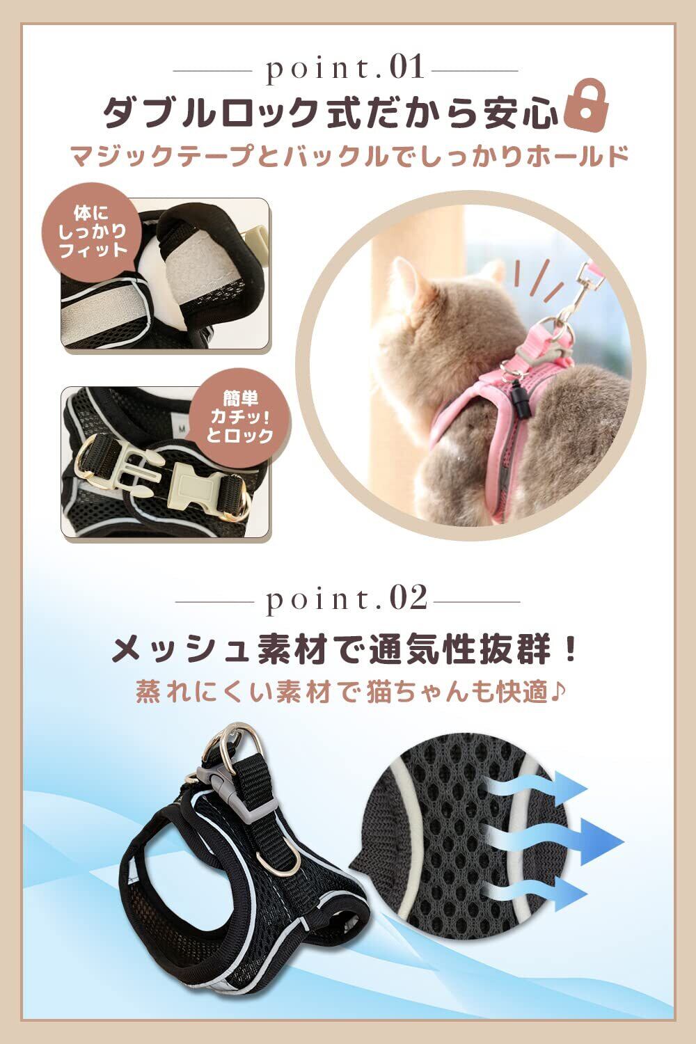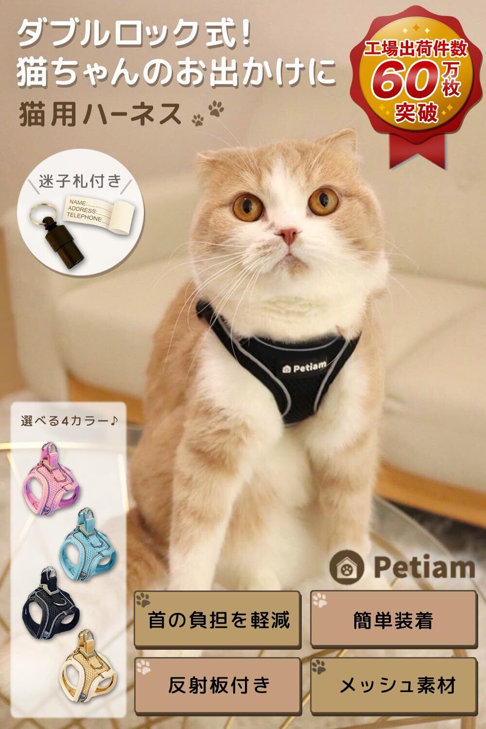 (シリーズ累計2万個突破) Petiam 猫 ハーネス リード 猫用 抜けない ダブルロック リードセット 迷子札付き お散歩セット (ピンク, M)