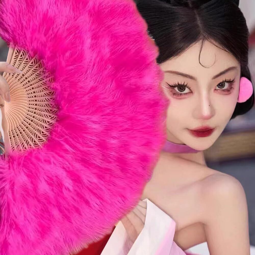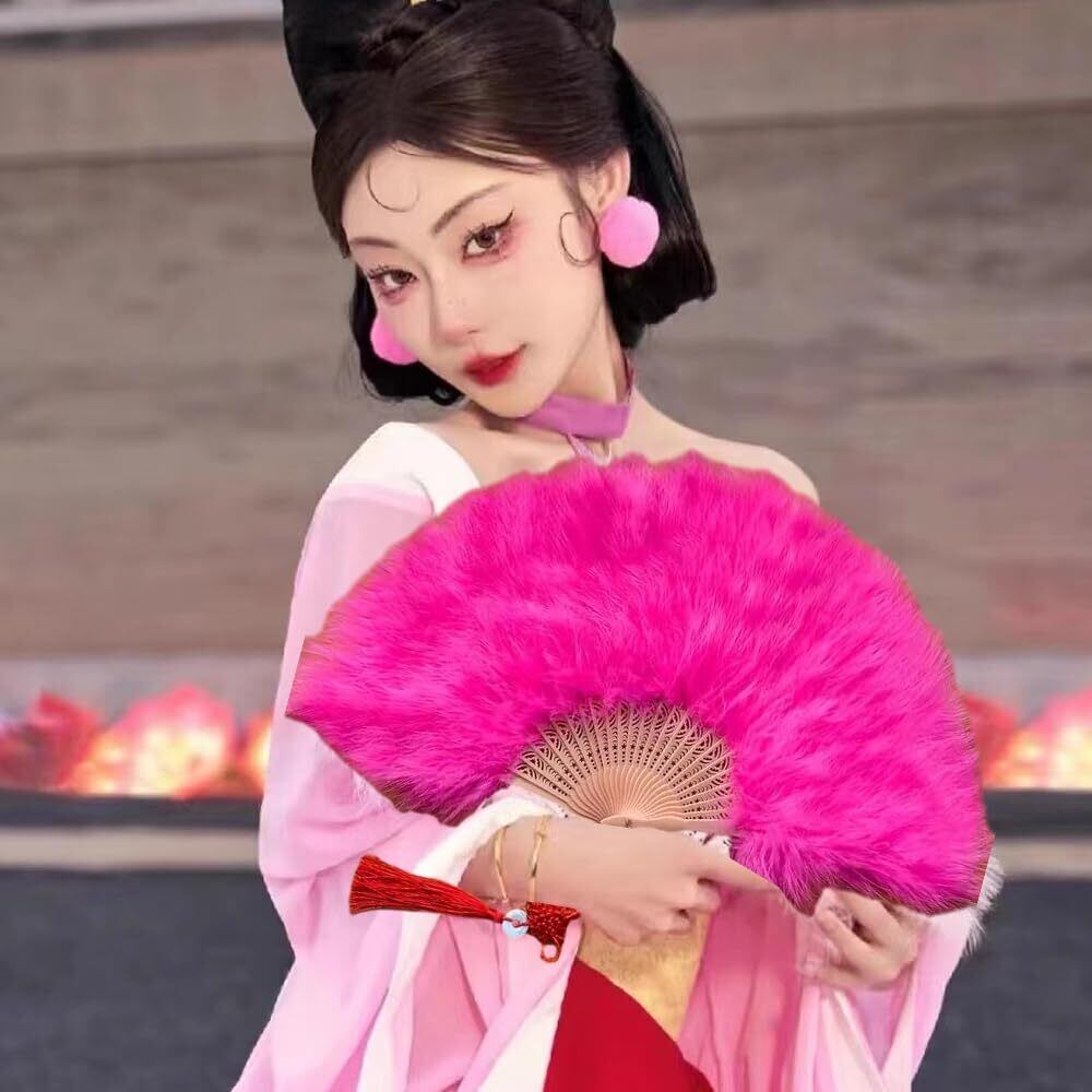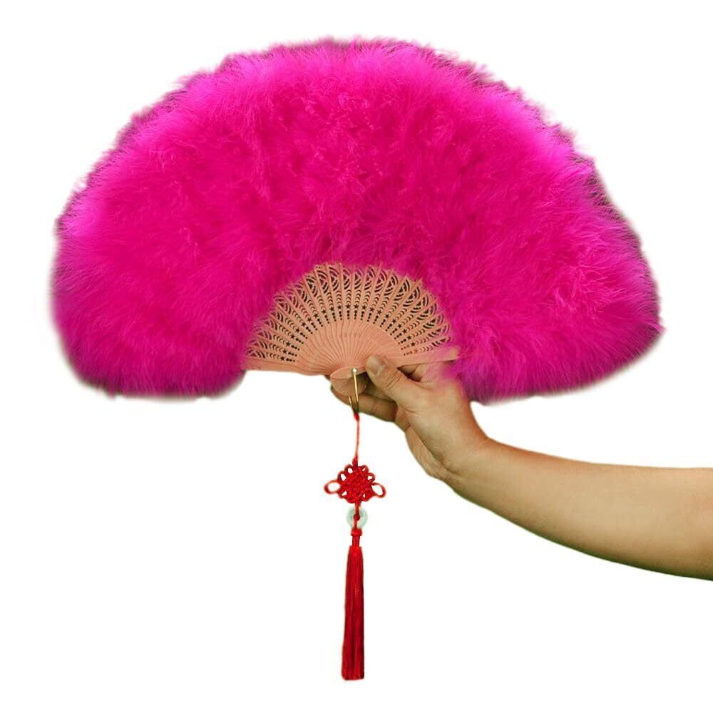 【在庫セール】LOYELEY 扇子 羽扇子 ジュリ扇 舞扇子 ジュリアナ羽扇子 ダンス 高級 ふわふわ パーティー 踊り ディスコ バブル ハロウィン コスプレ 舞台道具 結婚式 文化祭 演出 (濃いピンク) | gsmshop
