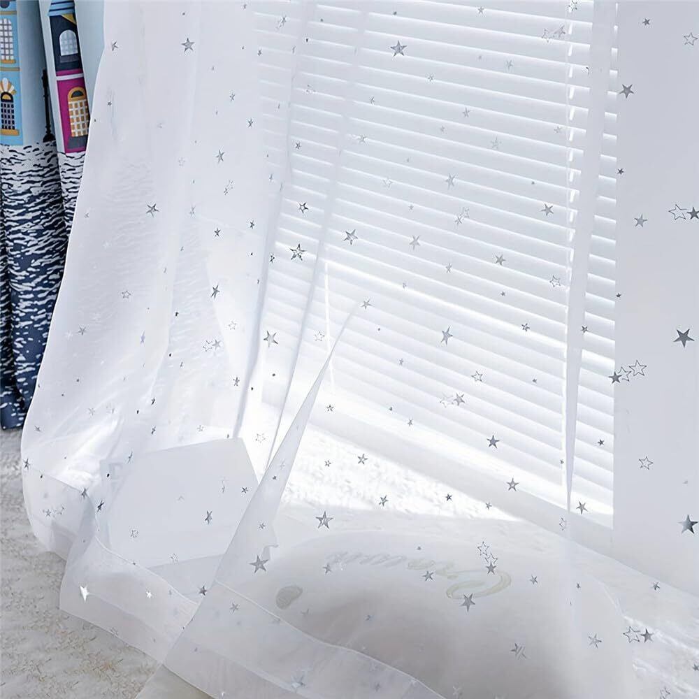 設計:かわいい星柄、用途が広くスタイリッシュなレースカーテン、部屋に光を取り入れ、プライバシーを保護します。