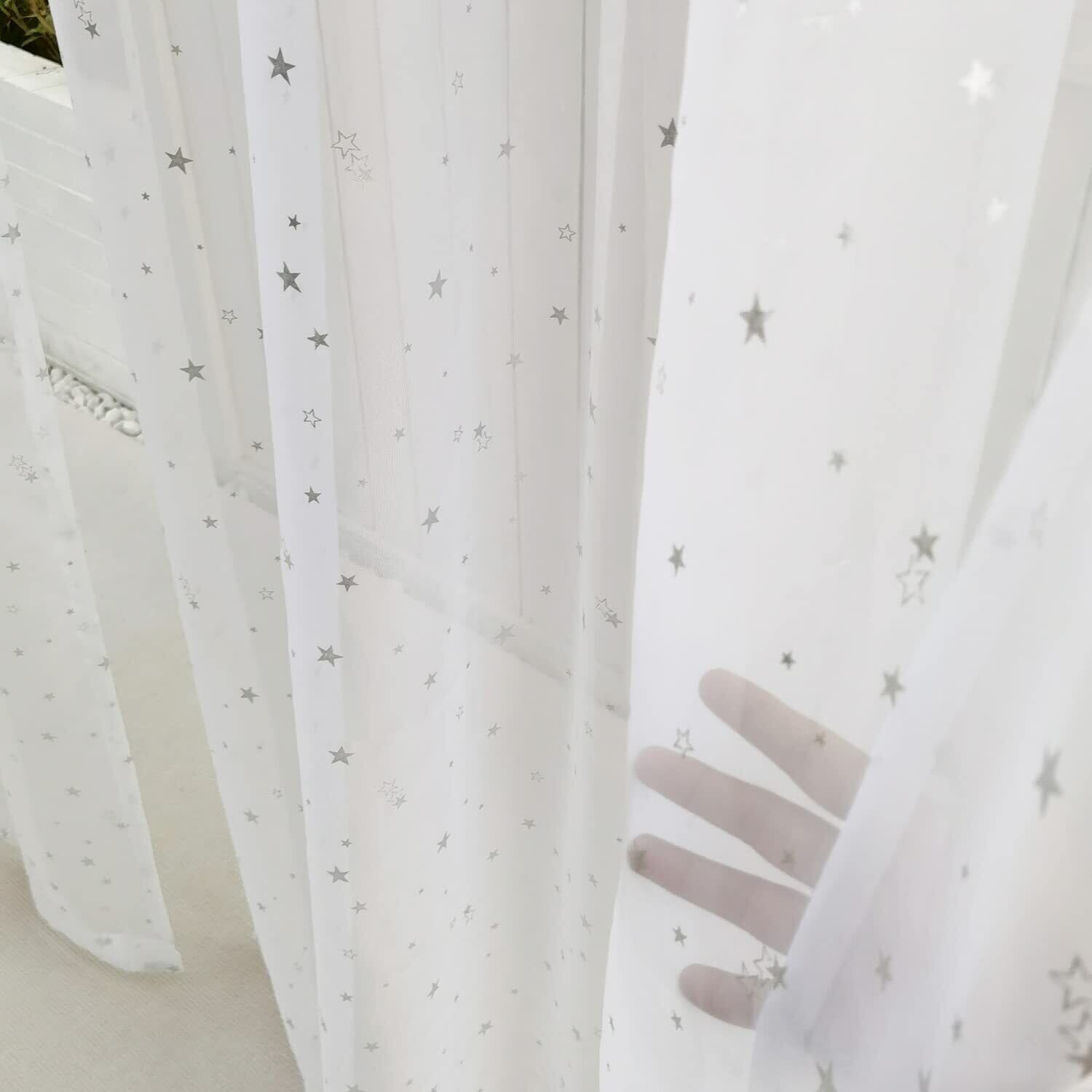 WPKIRA レースカーテン UVカット薄手のカーテン おしゃれ 自然に 換気 半遮光 窓 部屋 寝室 銀色の星 ドア 子どものカーテン 洗濯可能 1組2枚入(幅100cm×丈178cm /1片)