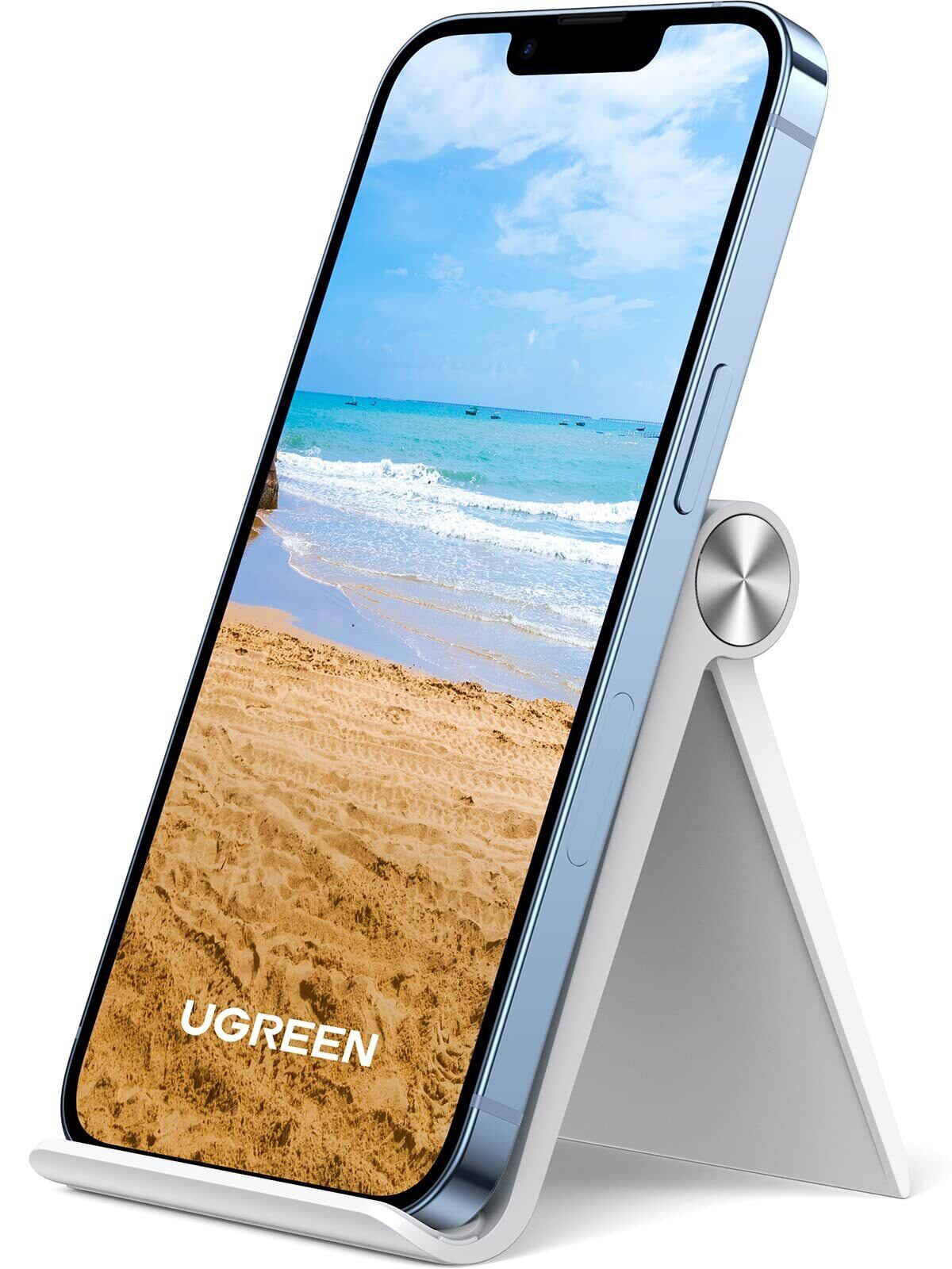 UGREEN スマホスタンド 卓上用 携帯電話スタンド Sサイズ ABS素材 iPhone 13/12/mini/Pro/ProMax/スタンド 折りたたみ式 100°角度調整可能 4~7.9インチのiPhone Androidスマホ タブレットに適用 (白)