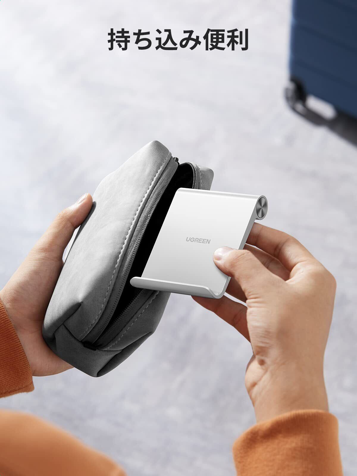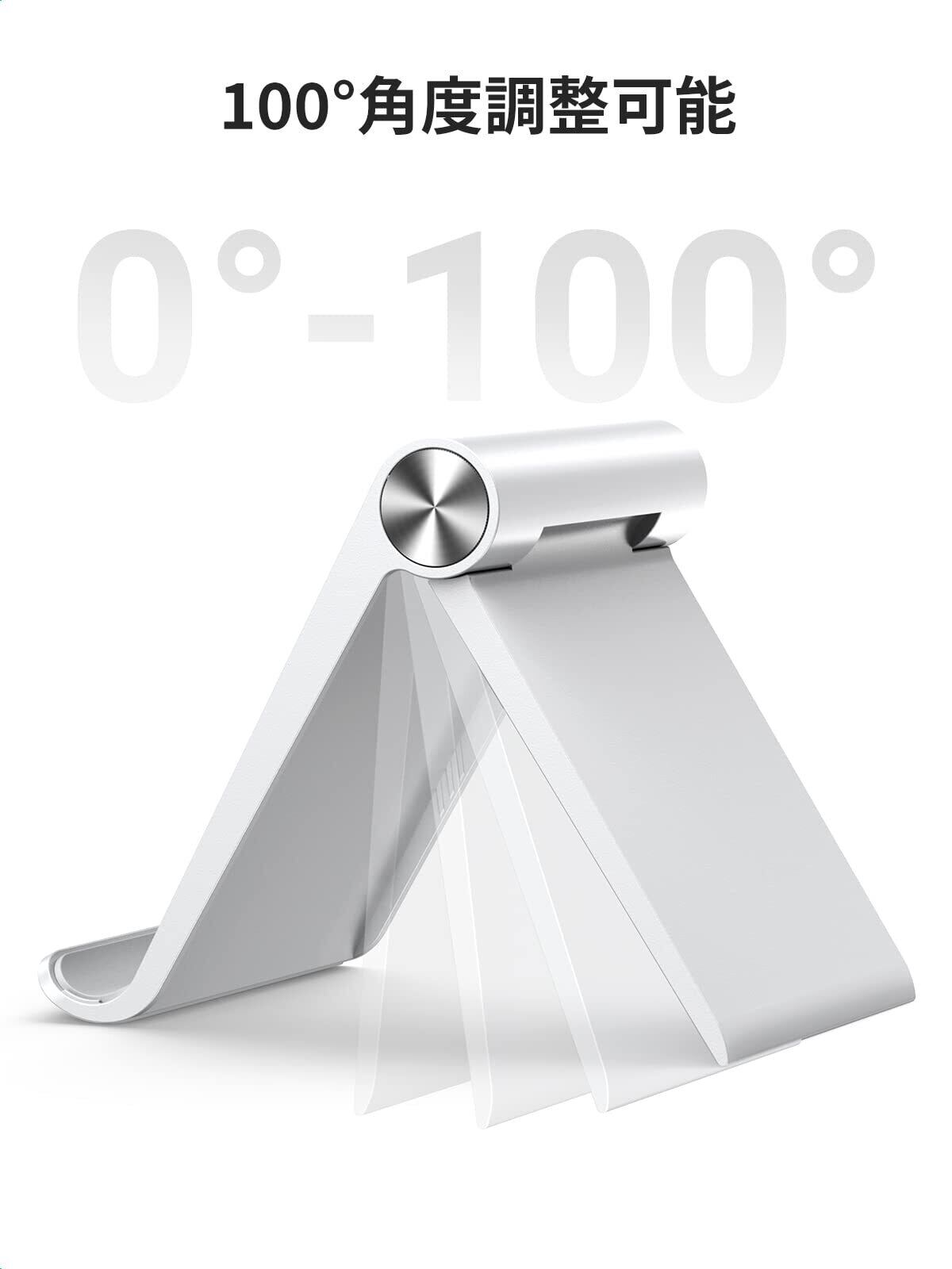 【調整可能】角度を0°~100°に調節でき、動画、画像、電子書籍などを楽しむスマホスタンドです。UGREEN 縦置きと横置きの両方に対応するこの携帯ホルダーは10個の階段を調節でき、iPhone, Galaxy, Xperia, Huawei等数多くのスマホ、ゲーム機に適用します。